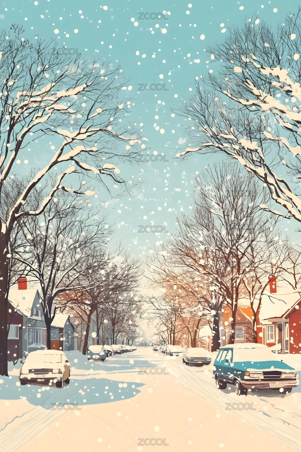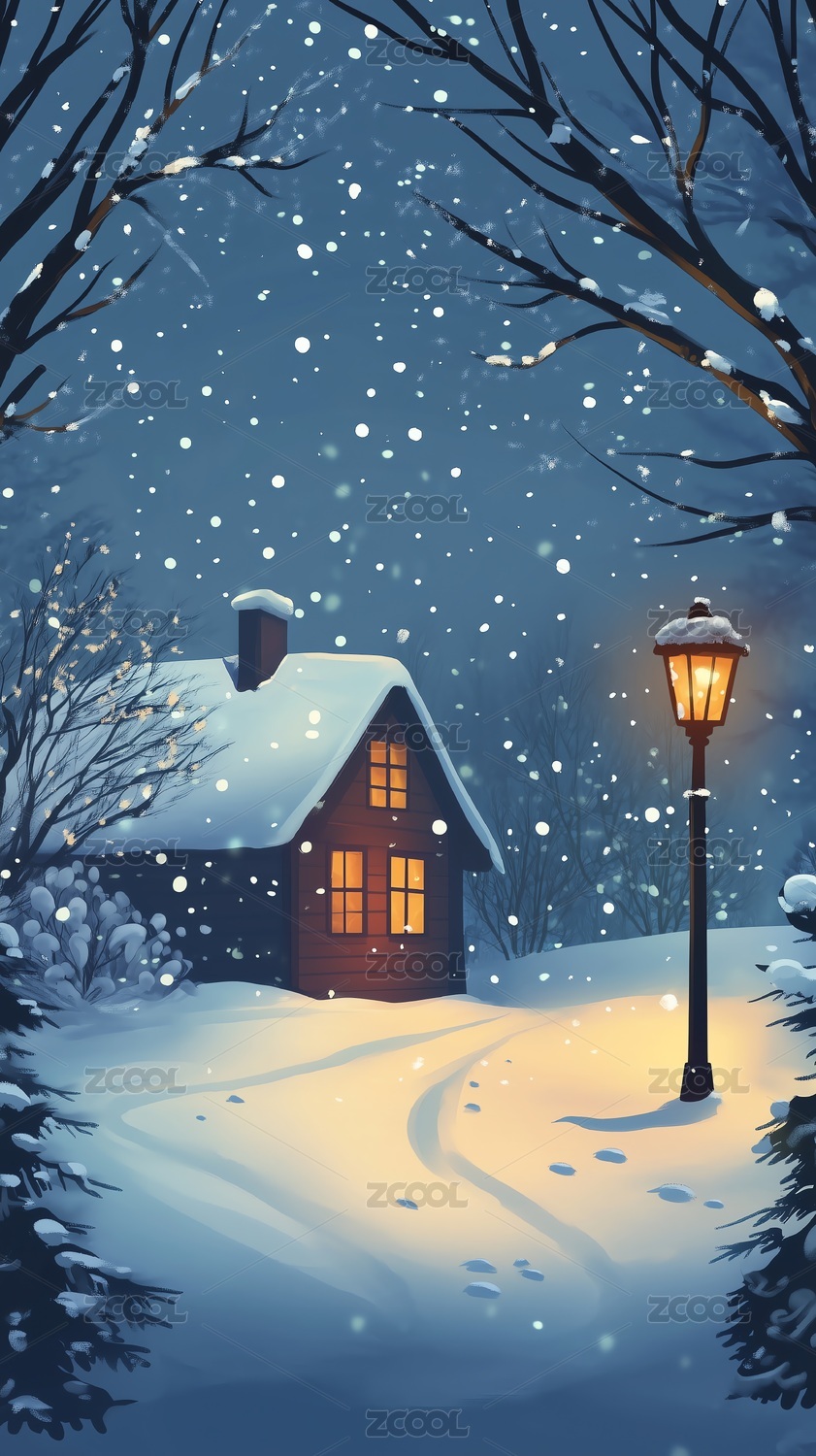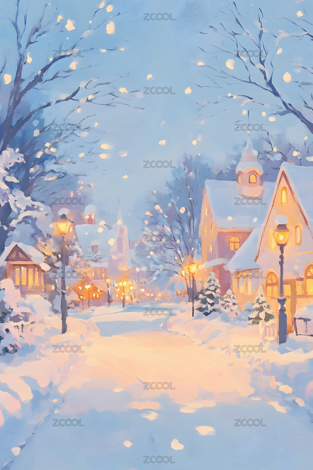 冬天冬季冰天雪地雪景圣诞节日插画背景
