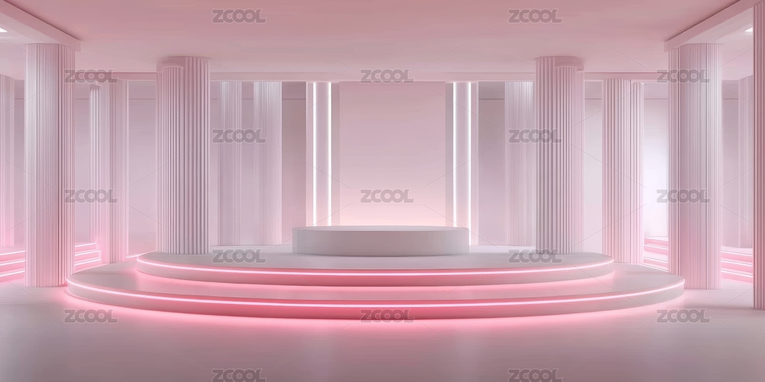 粉色室内空间产品展台场景