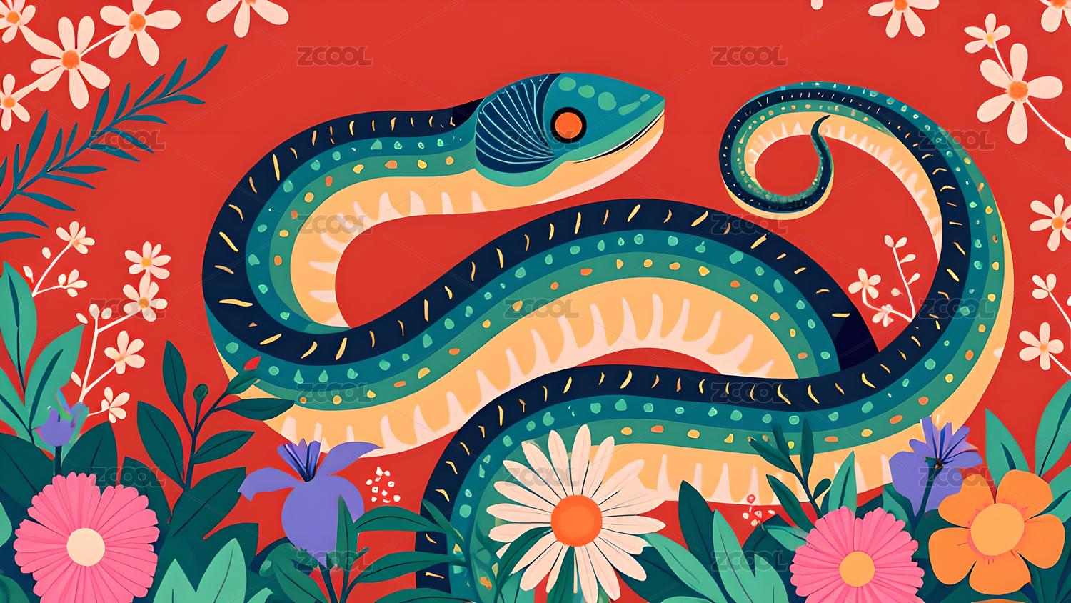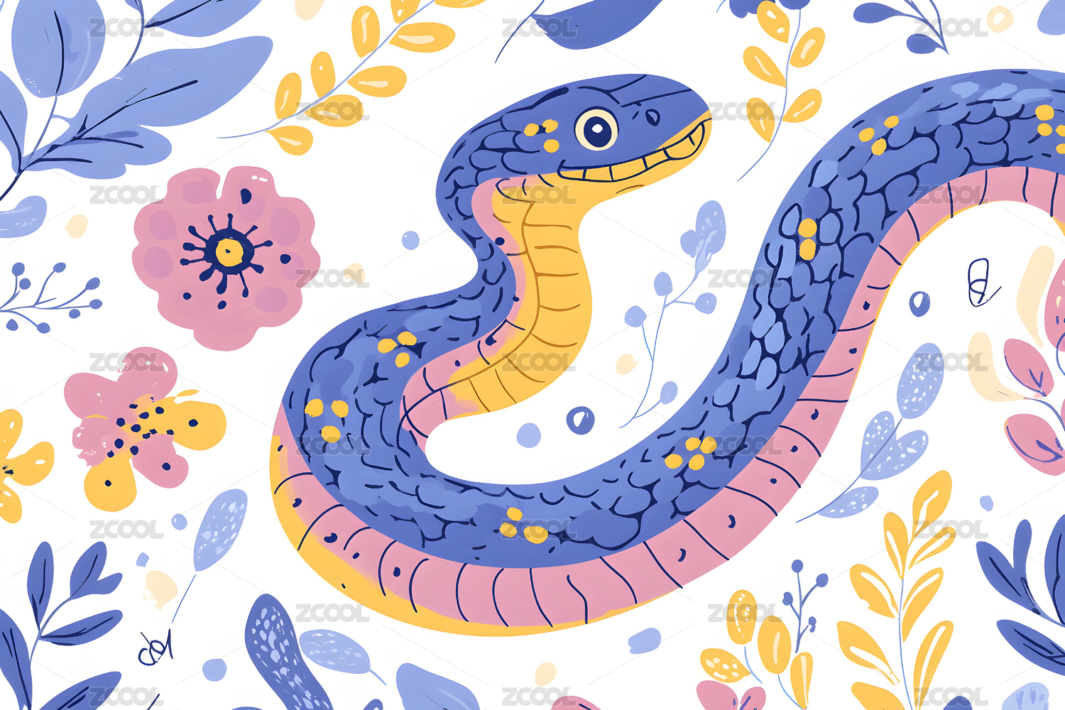 AIGCTP2024,插图,蛇,图案,抽象,设计,可爱,多彩,卡通,2025