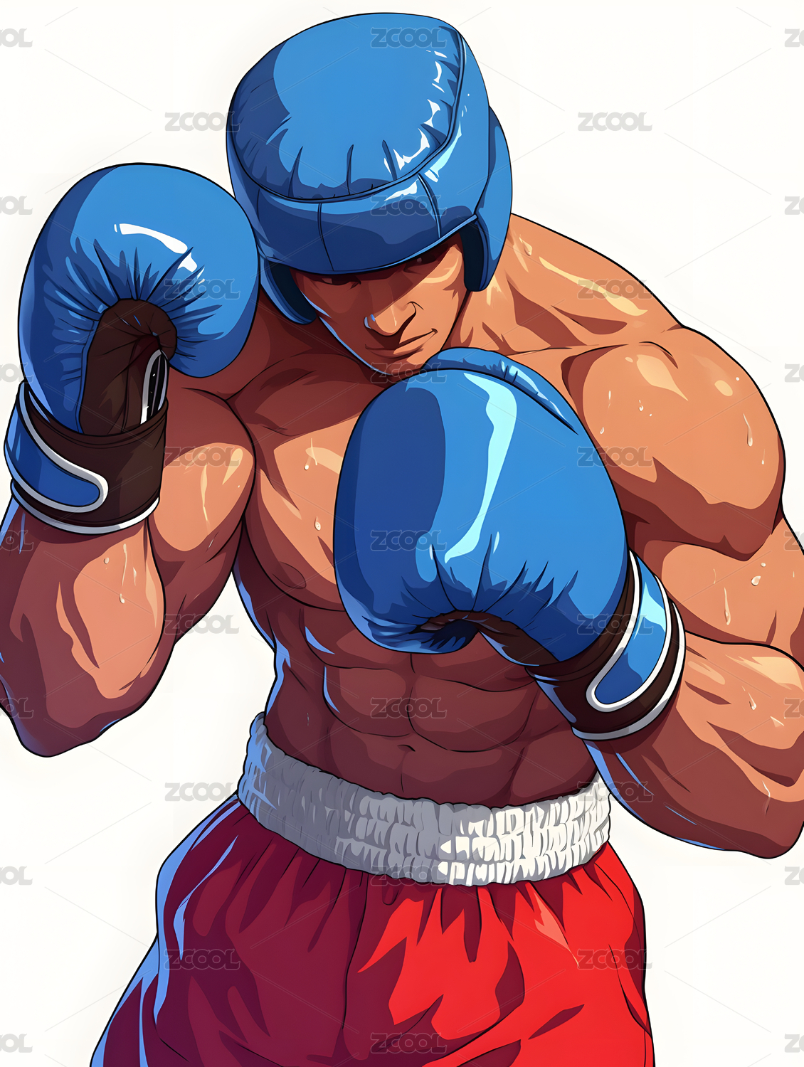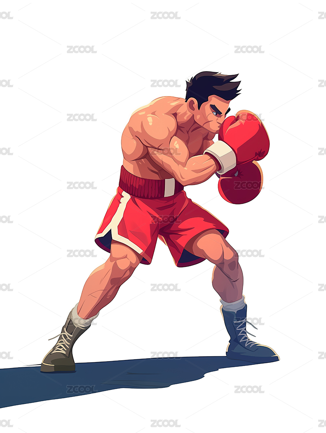 肌肉男赤膊打拳击的插画