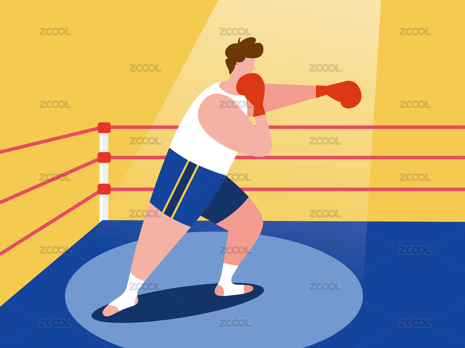 运动员在拳击的比赛彩绘插画