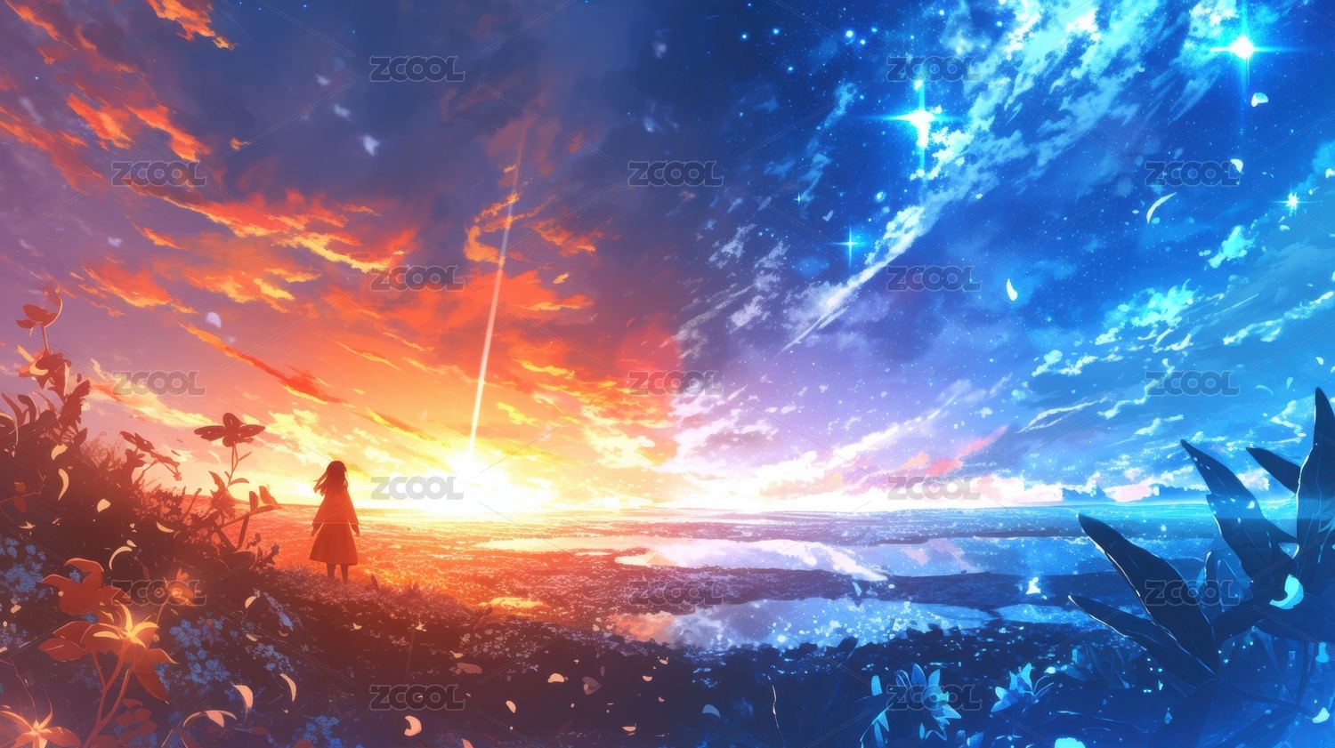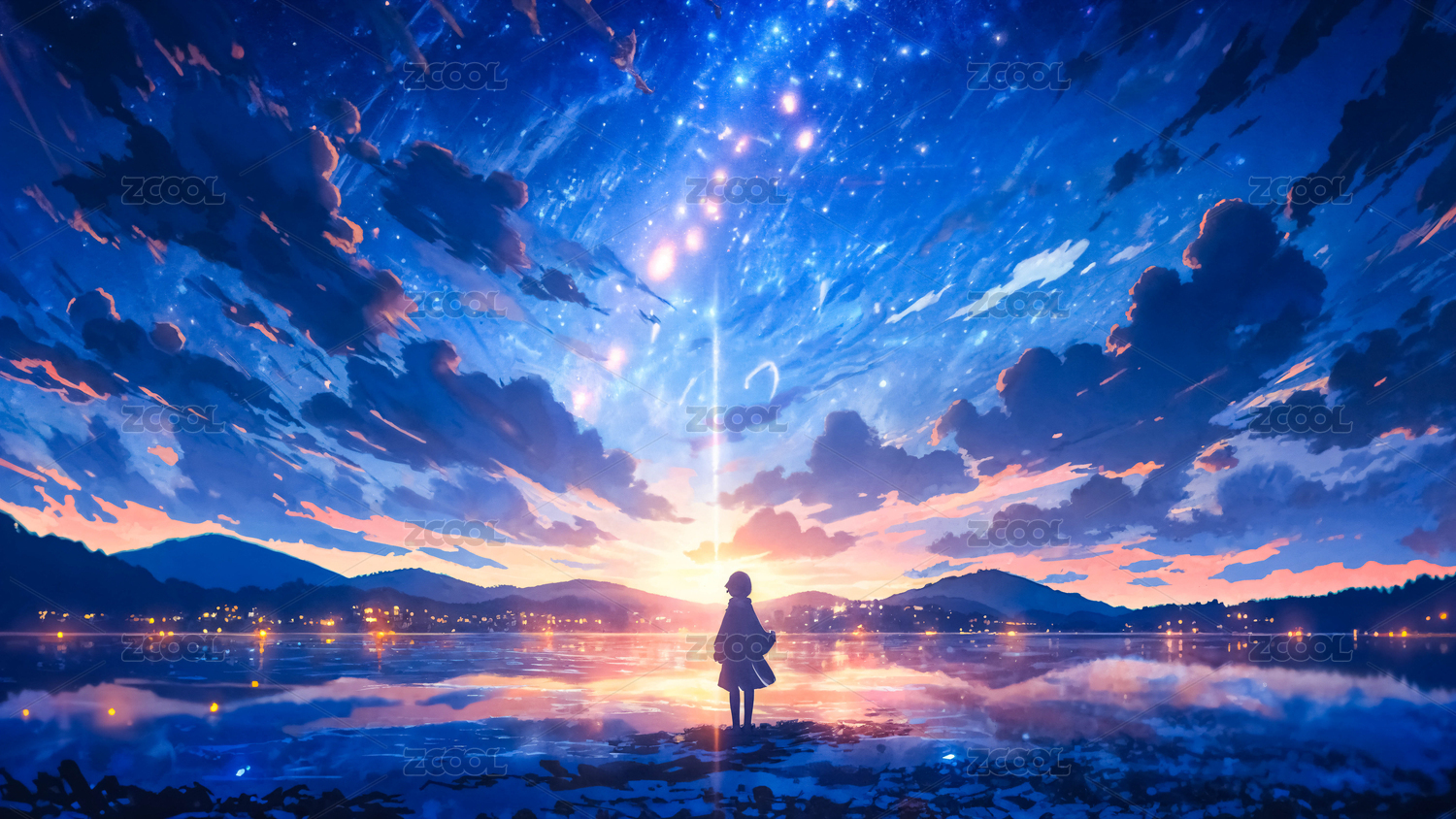 星空天空星云唯美震撼壁纸场景夜晚人物