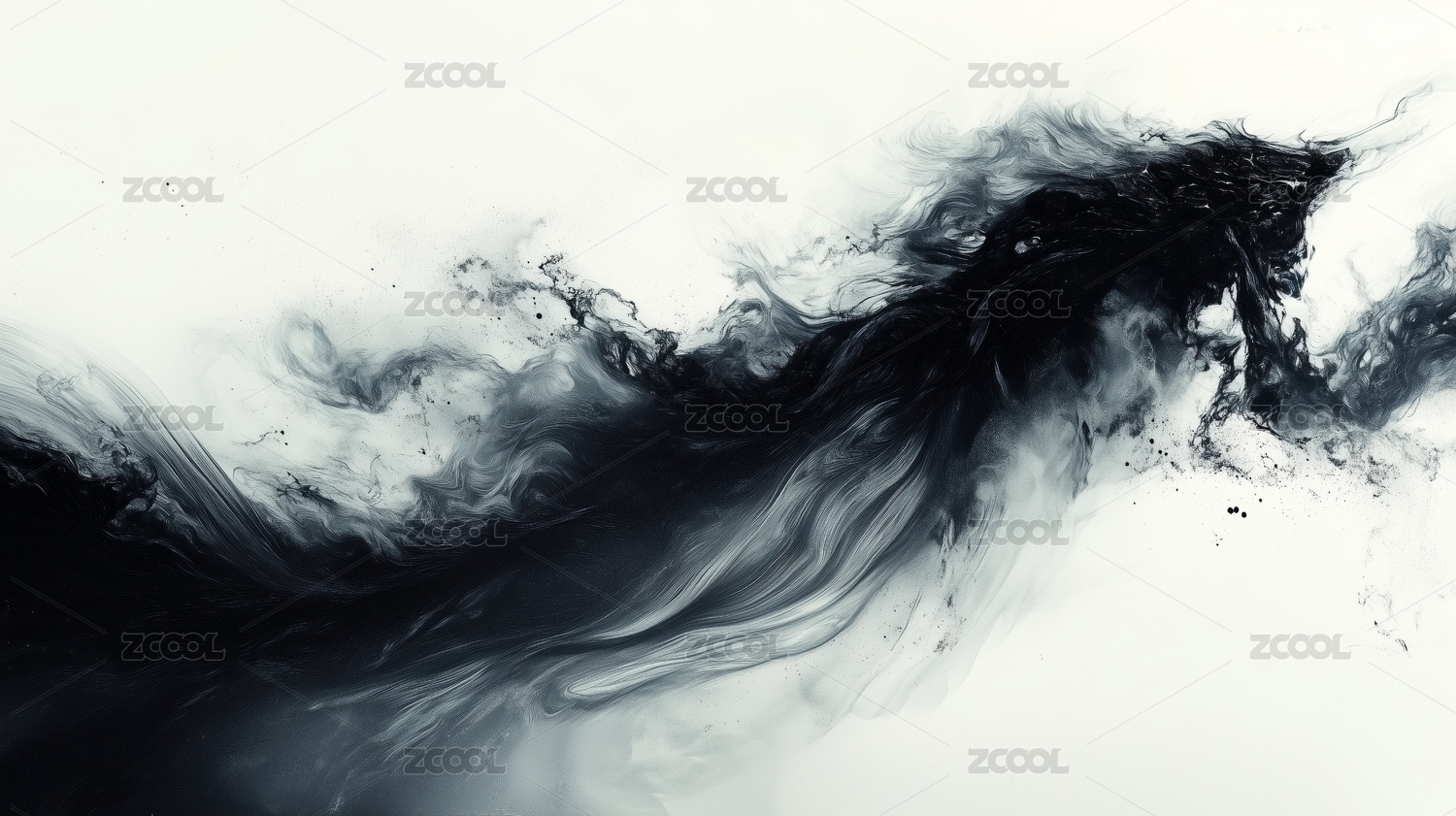 黑白水墨画抽象线条飞溅