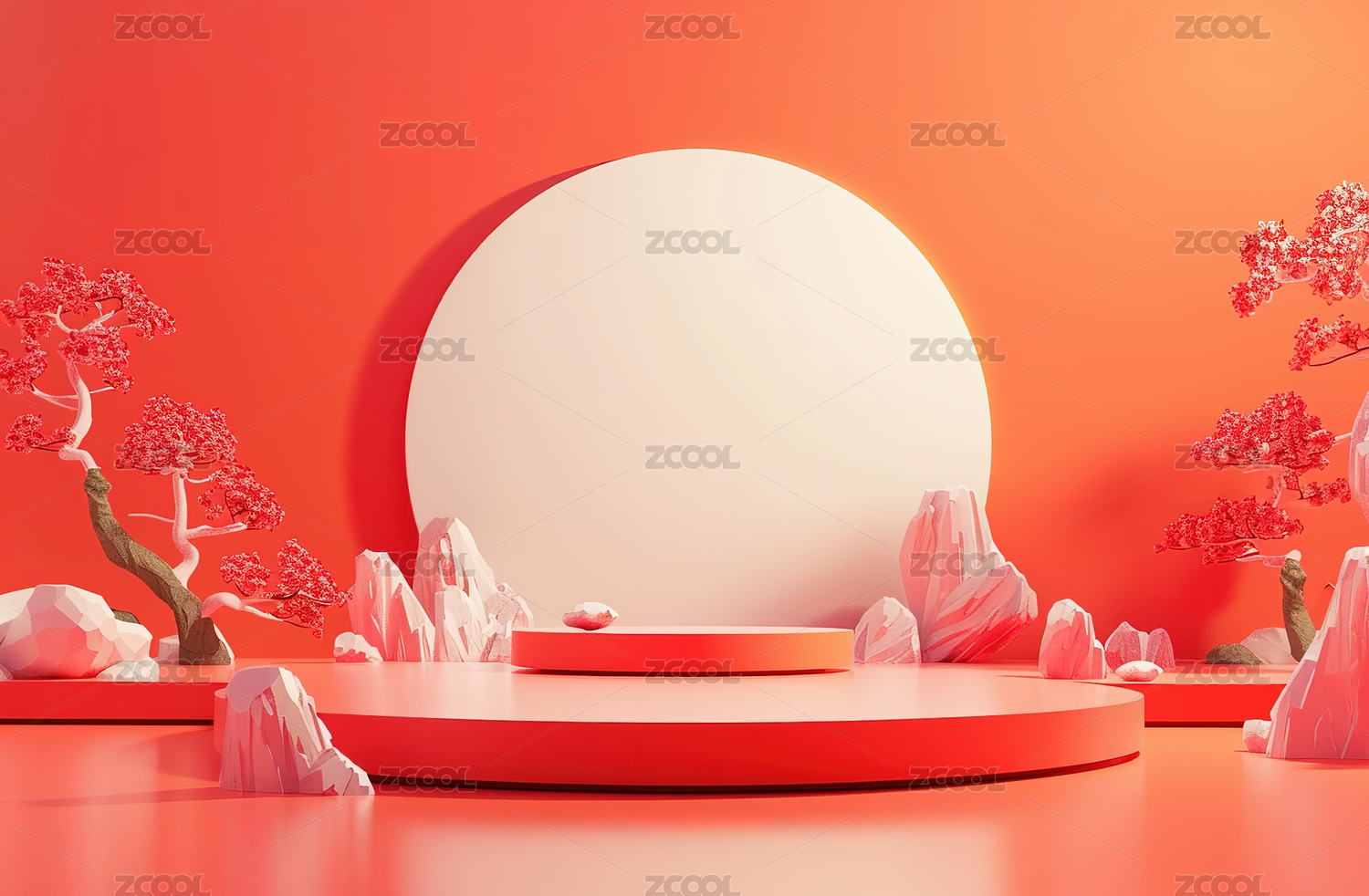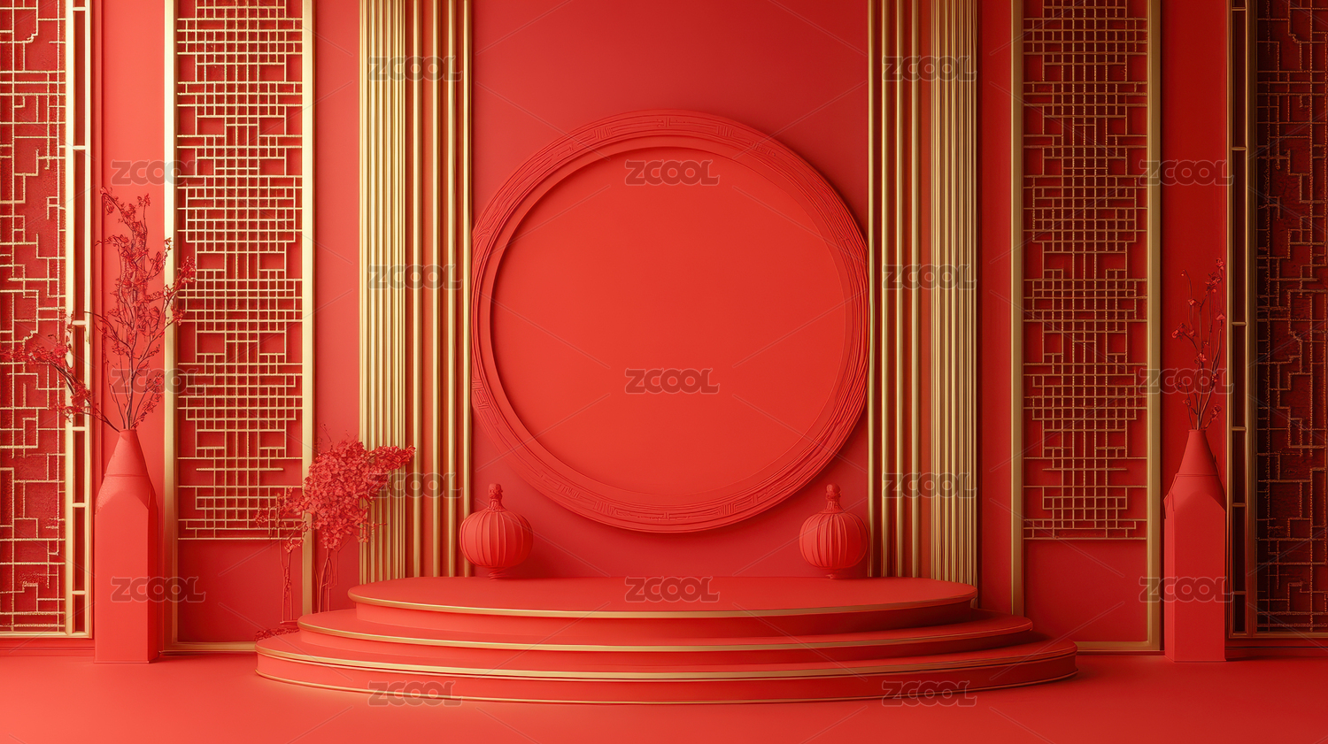 新年红色祥云3D圆形展台