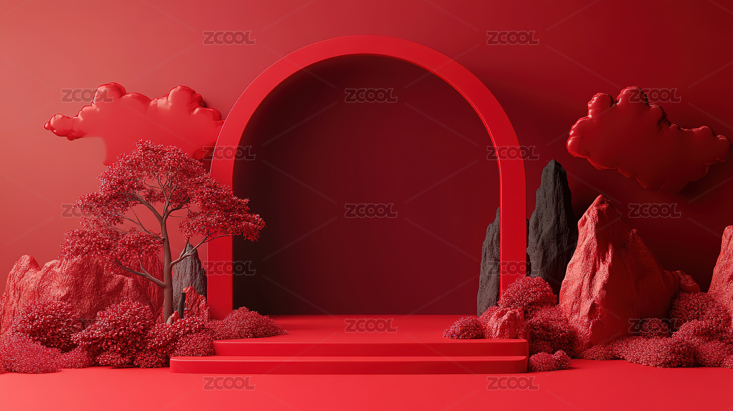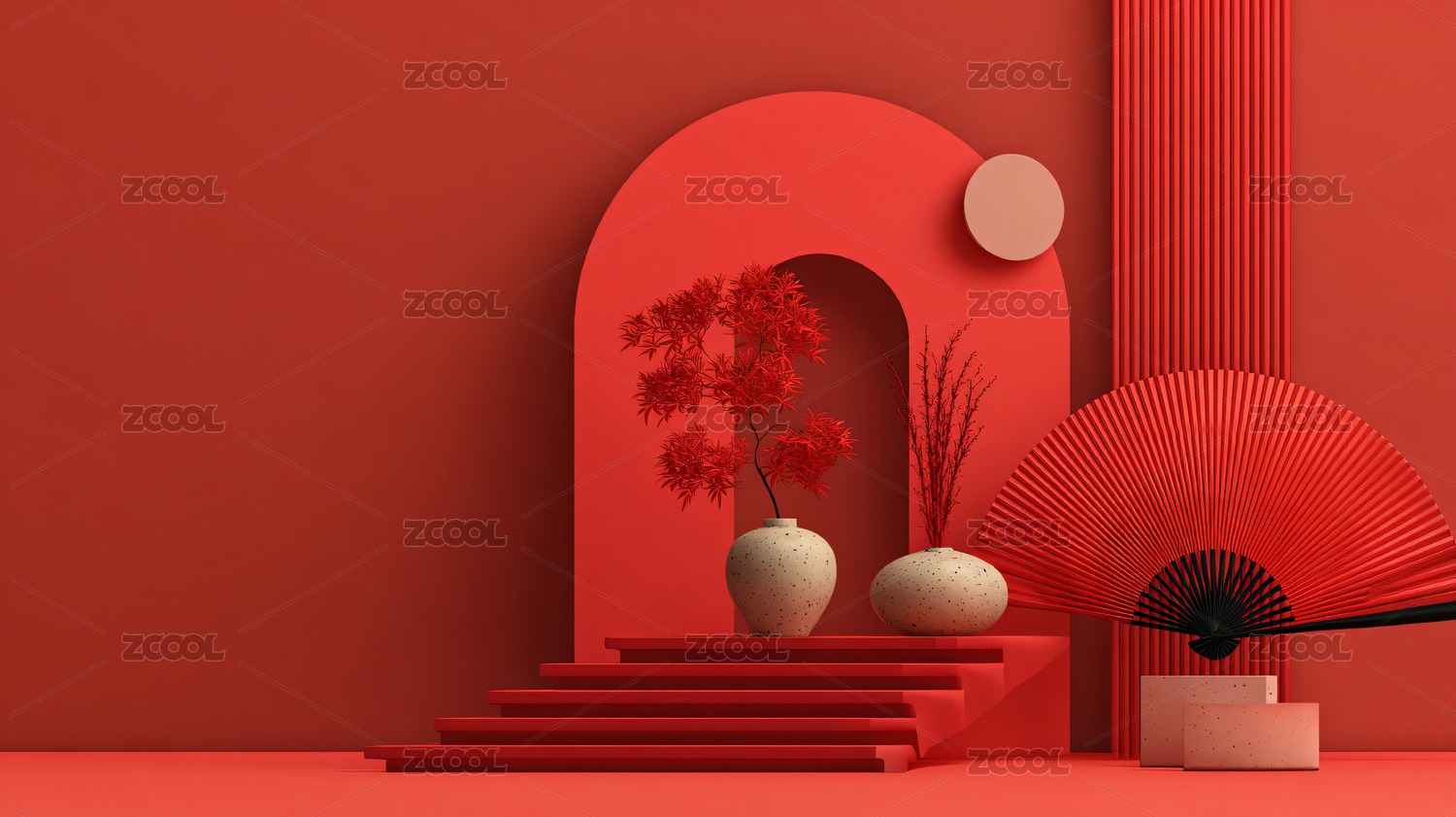 红色几何舞台场景