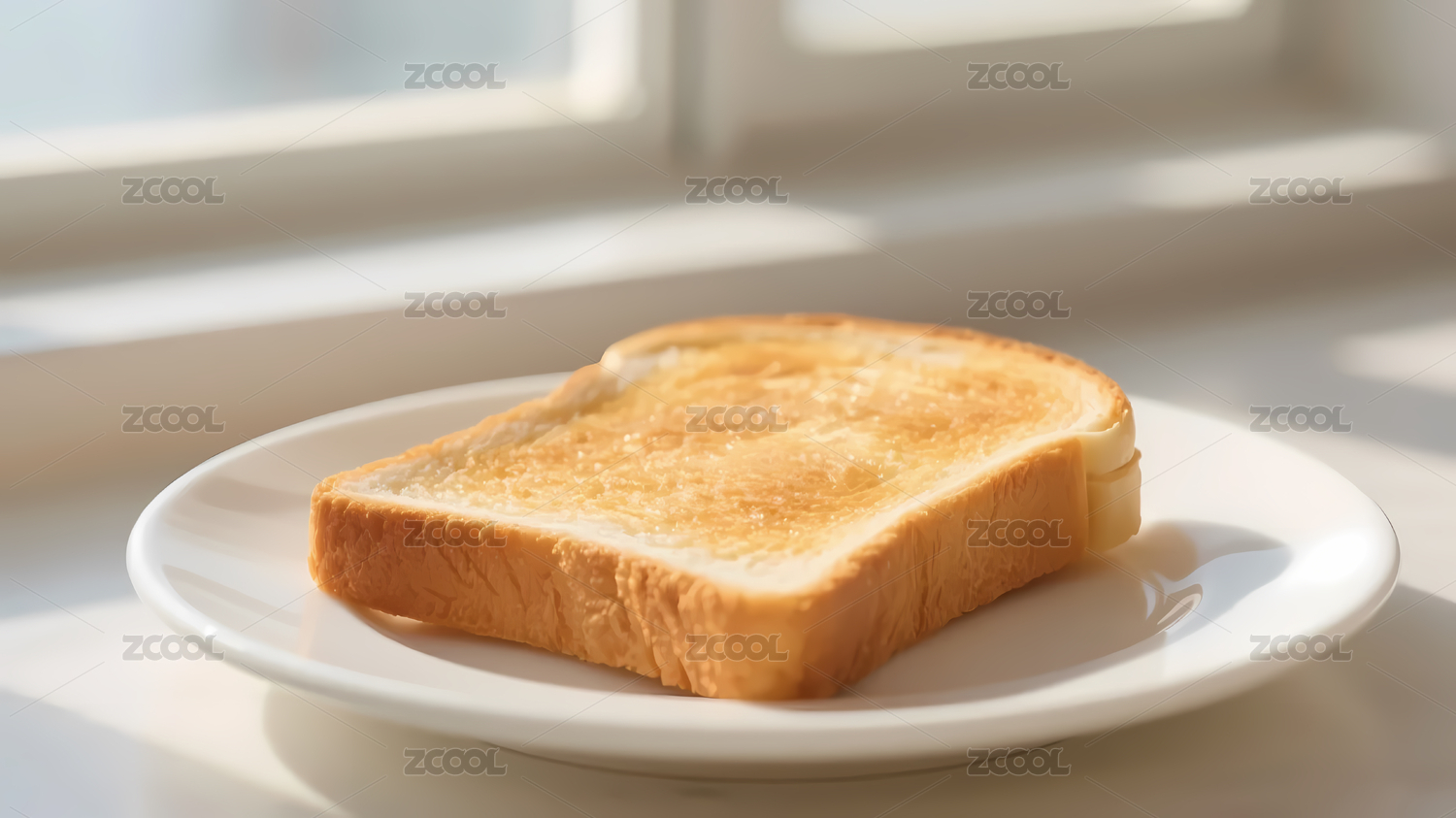白色背景上餐盘里摆放的原味土司