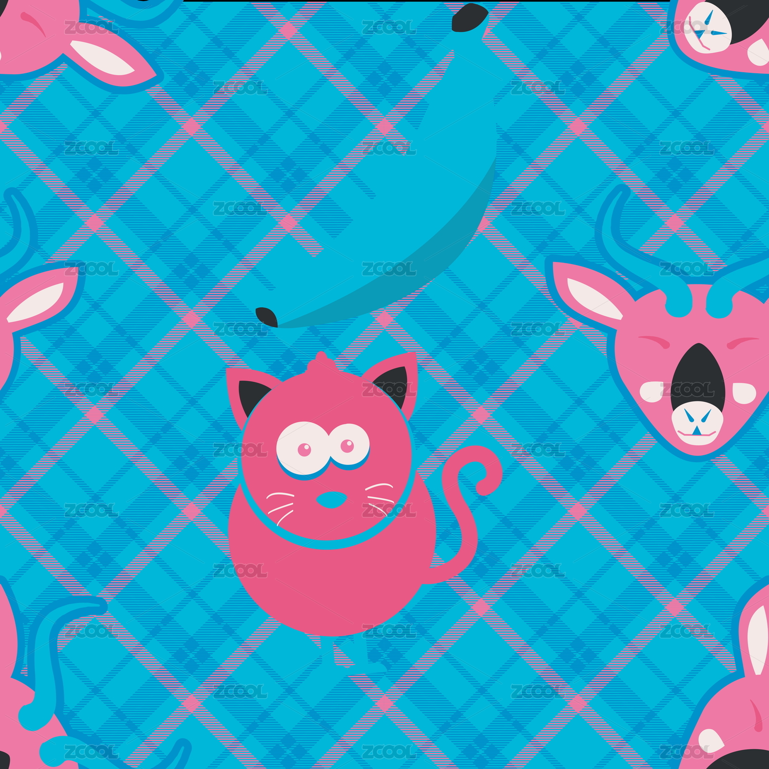 潮流可爱猫咪无缝插画