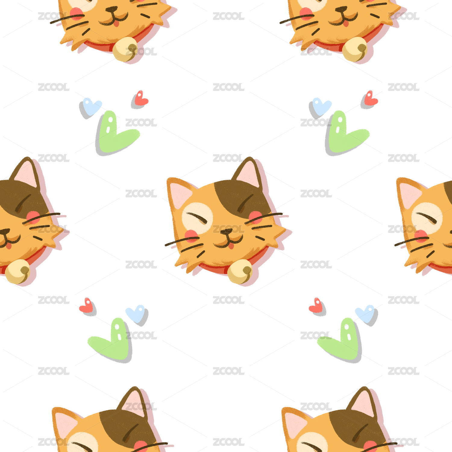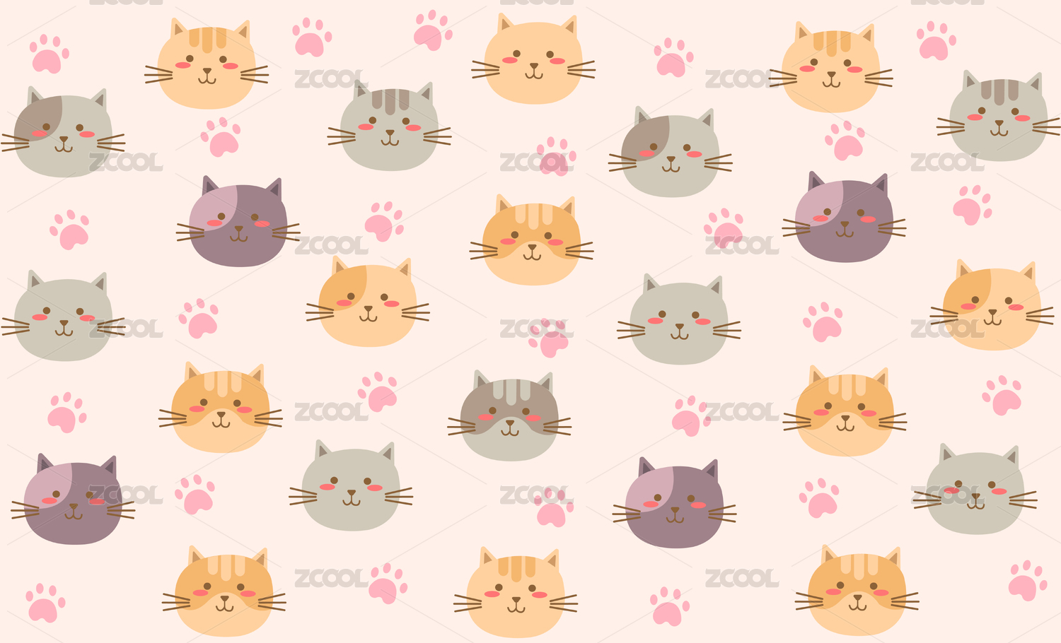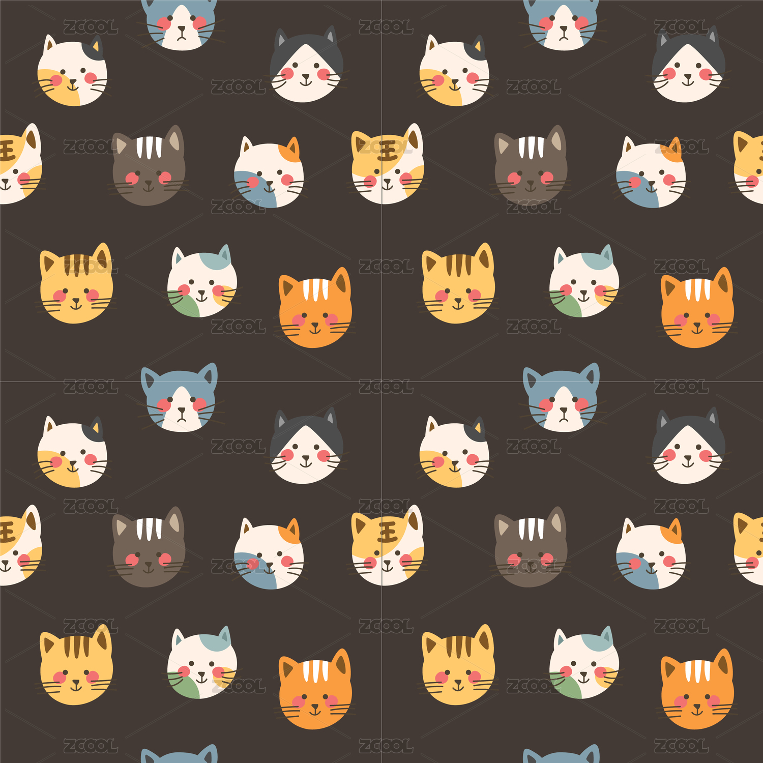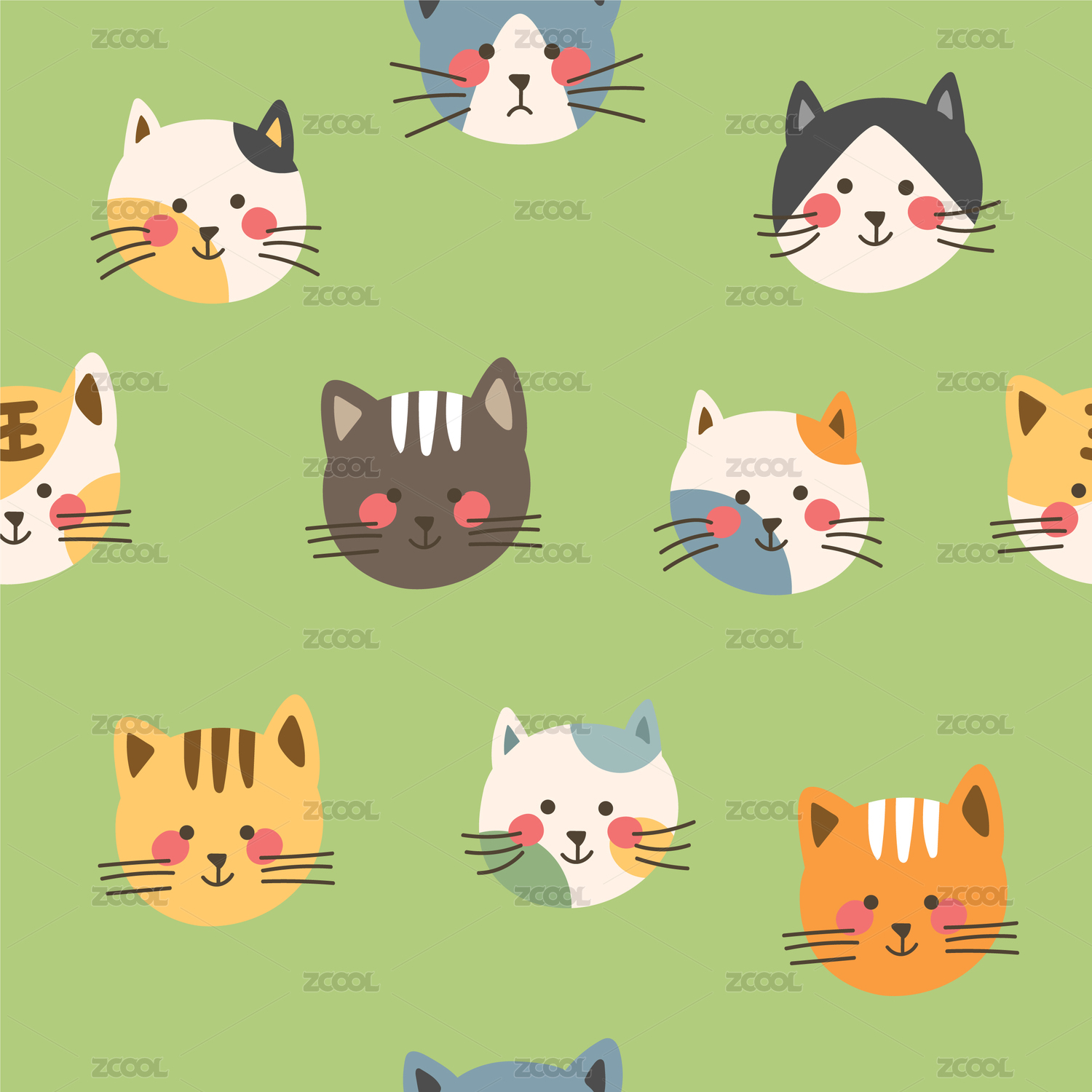 卡通猫咪头像无缝拼接底纹