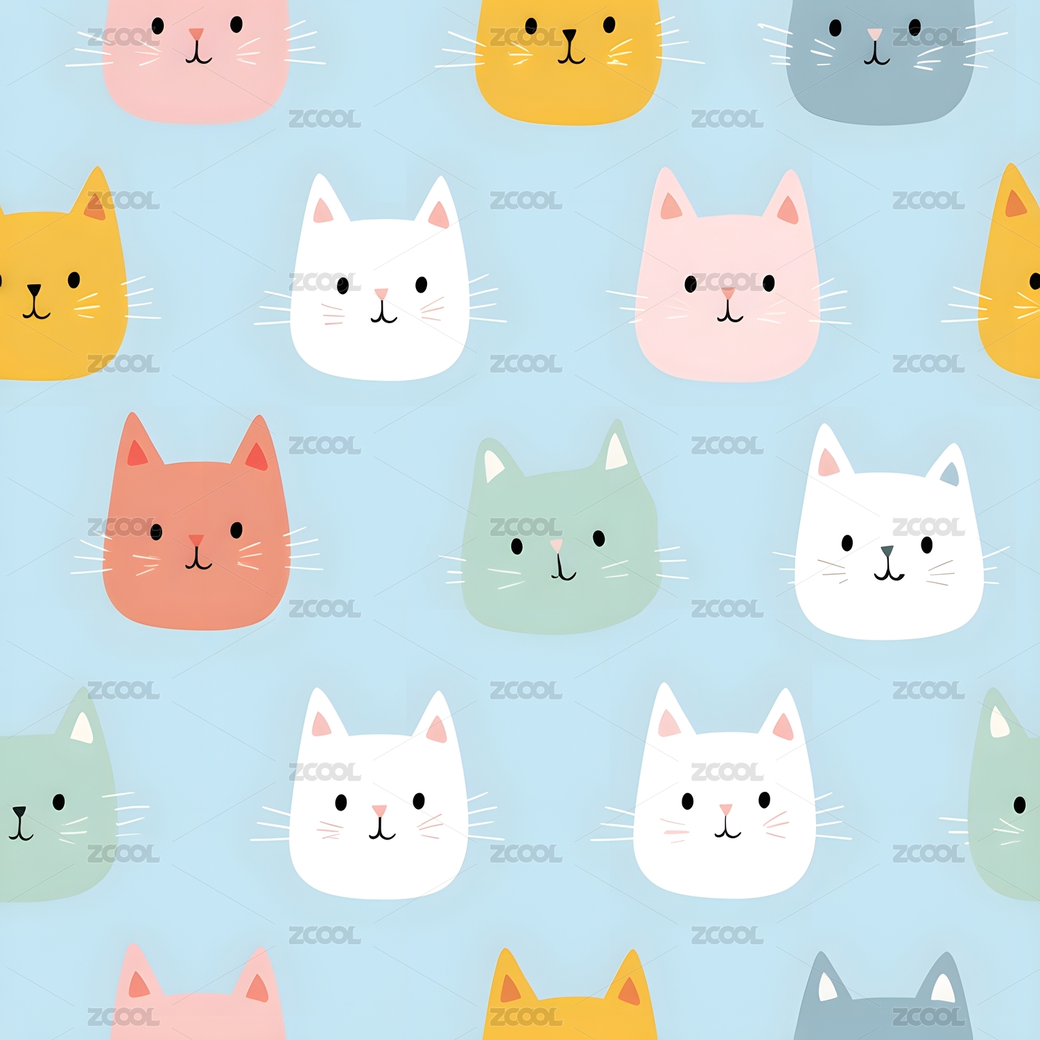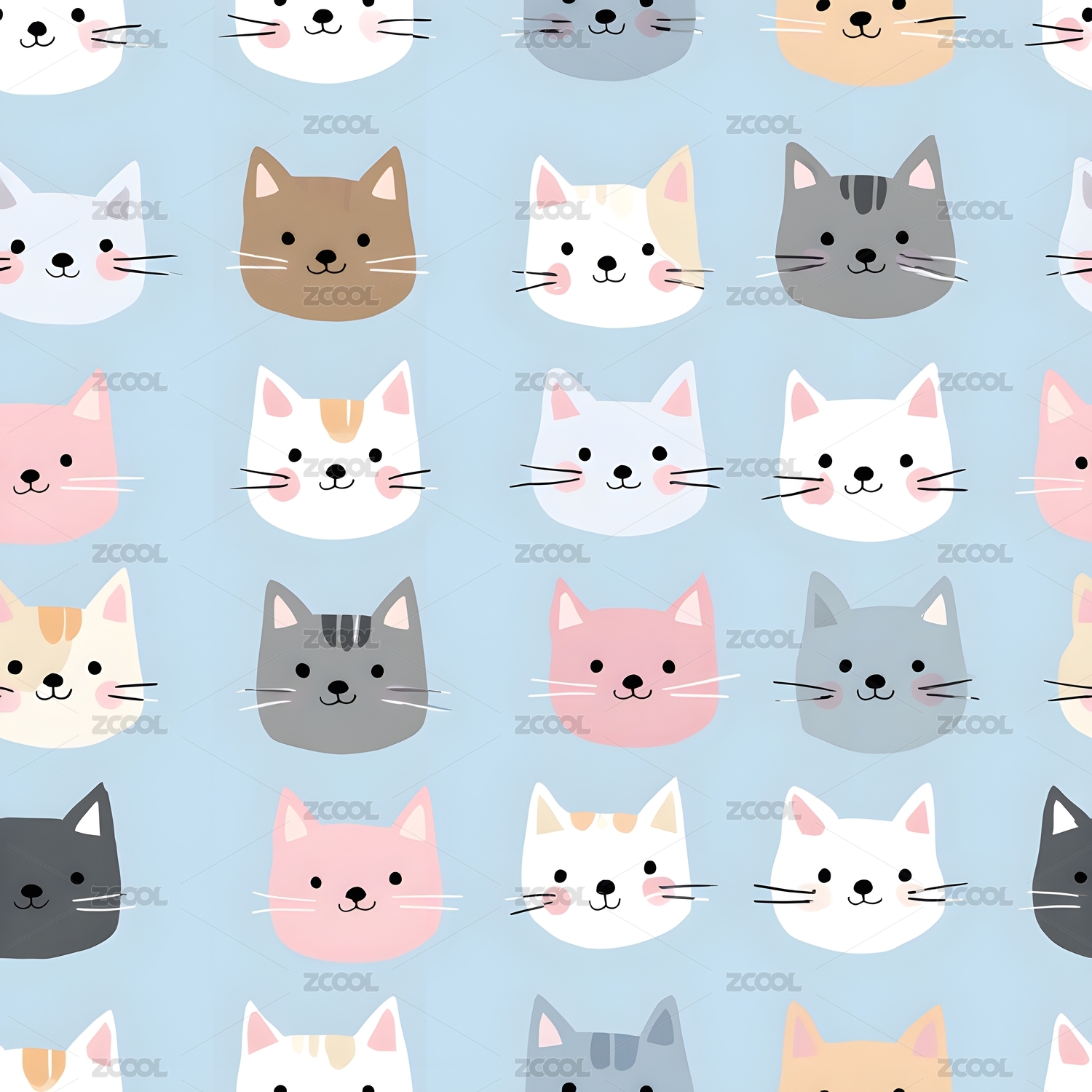 多彩猫咪头像浅蓝色背景图案