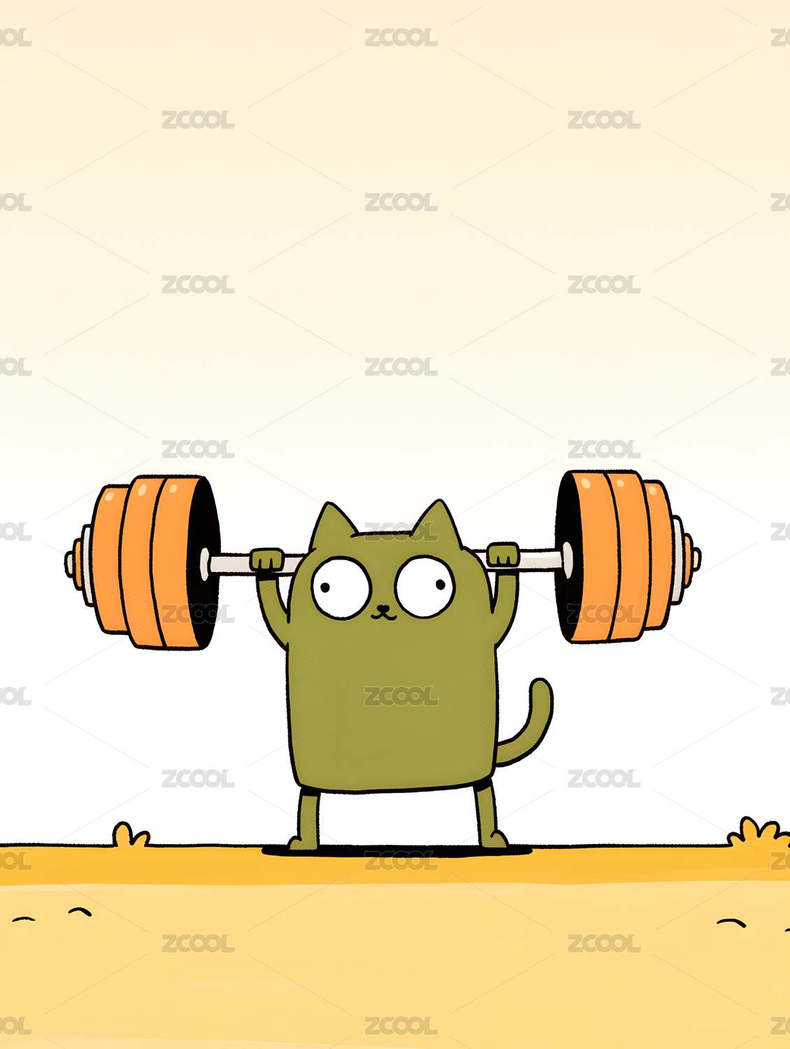 卡通简洁风格小猫举起杠铃童趣可爱插画印花