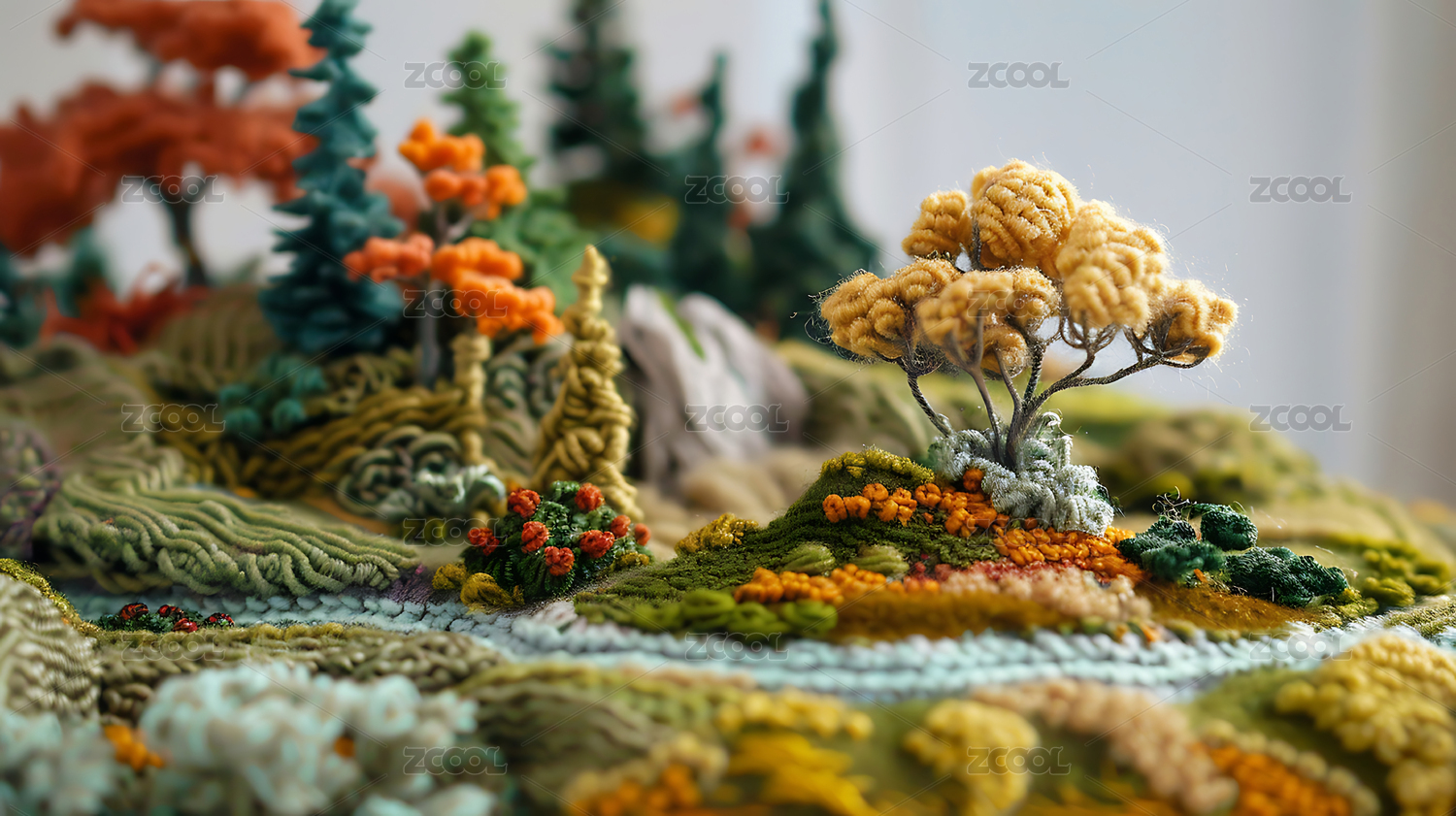 风景,自然,植物,户外,微缩,针织,毛线,棉线,毛绒,可爱