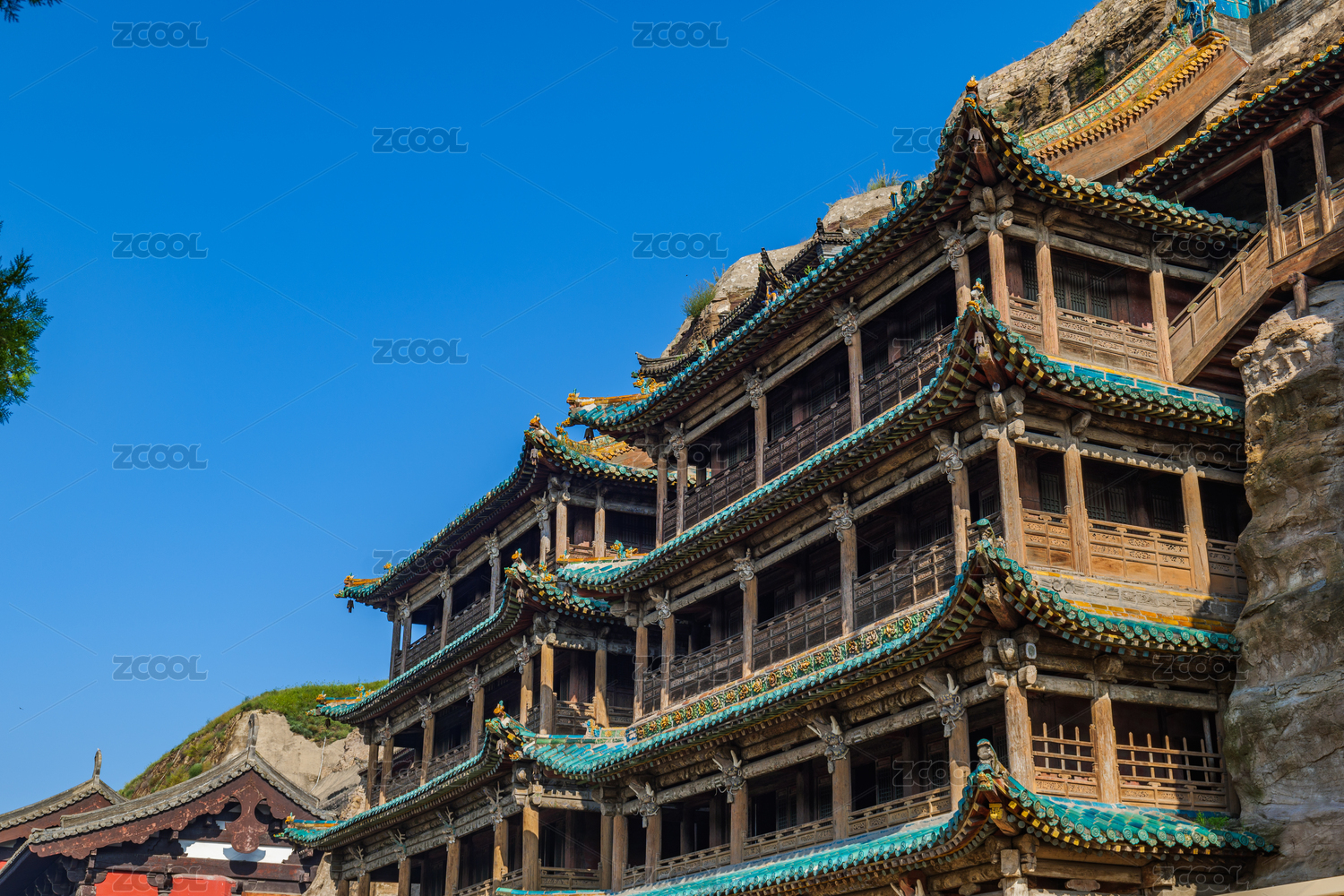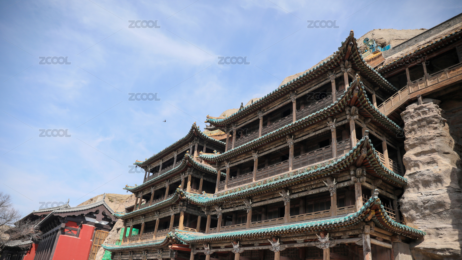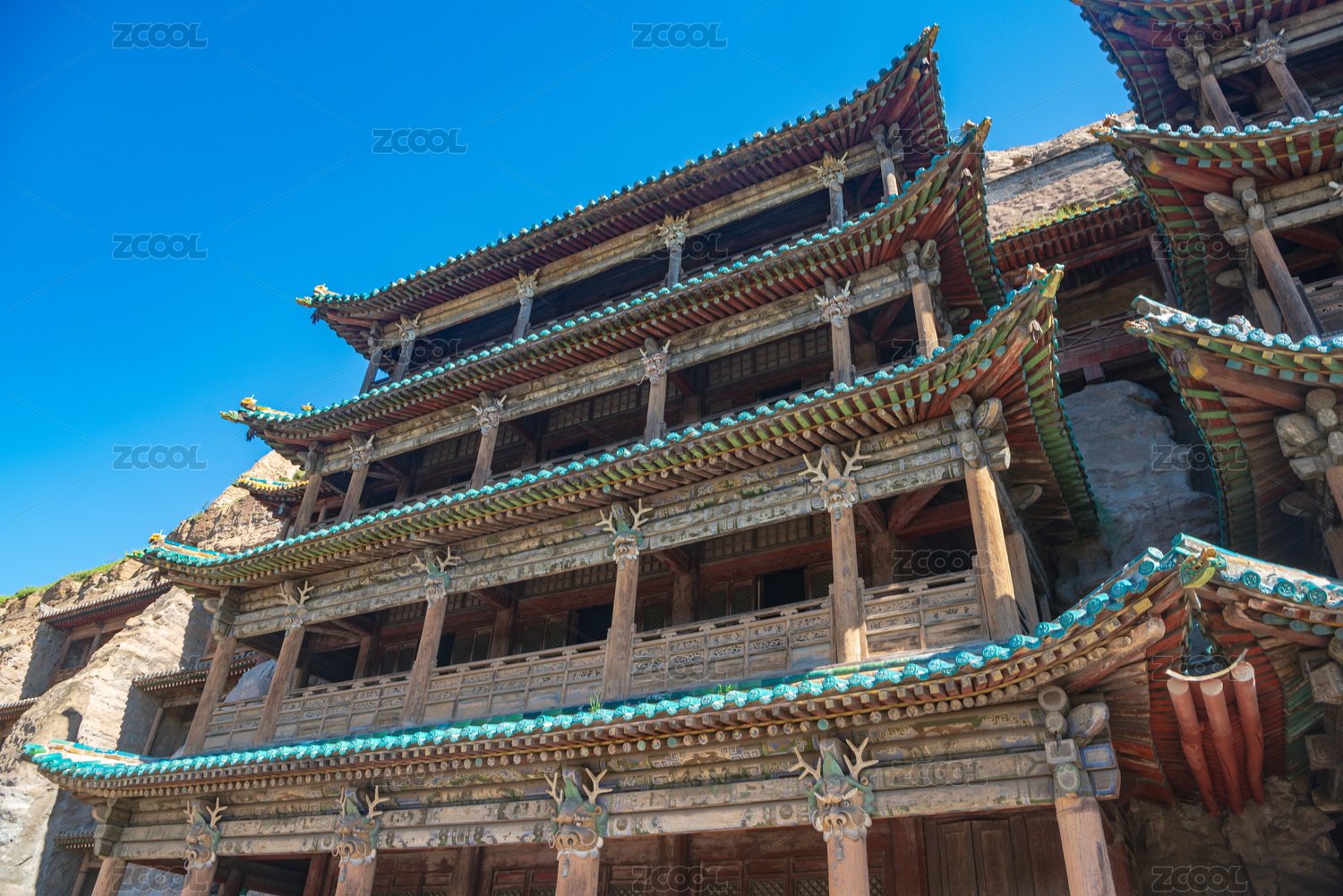 中国山西省大同市云冈石窟洞窟阁楼园林建筑