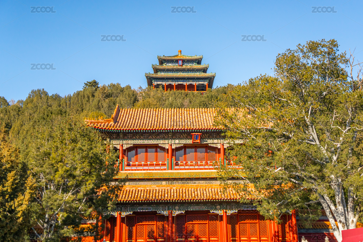 秋天景山公园古建筑风光