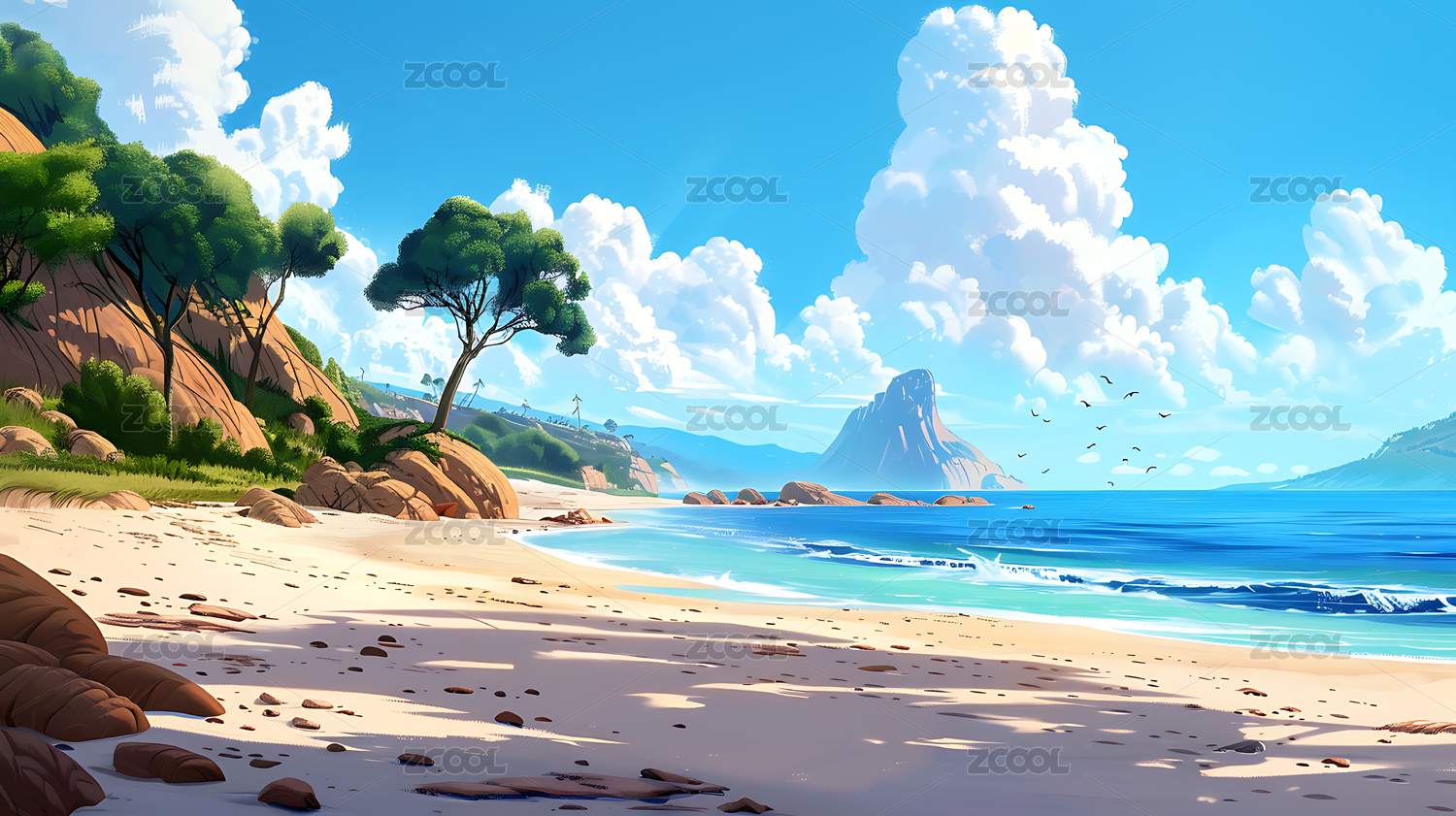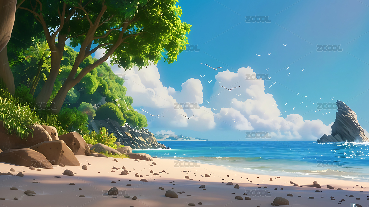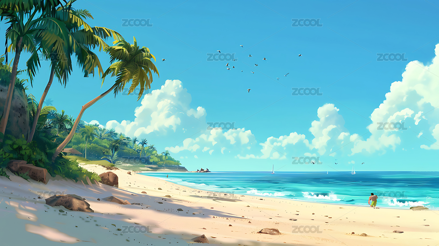 夏日清凉沙滩插画壁纸