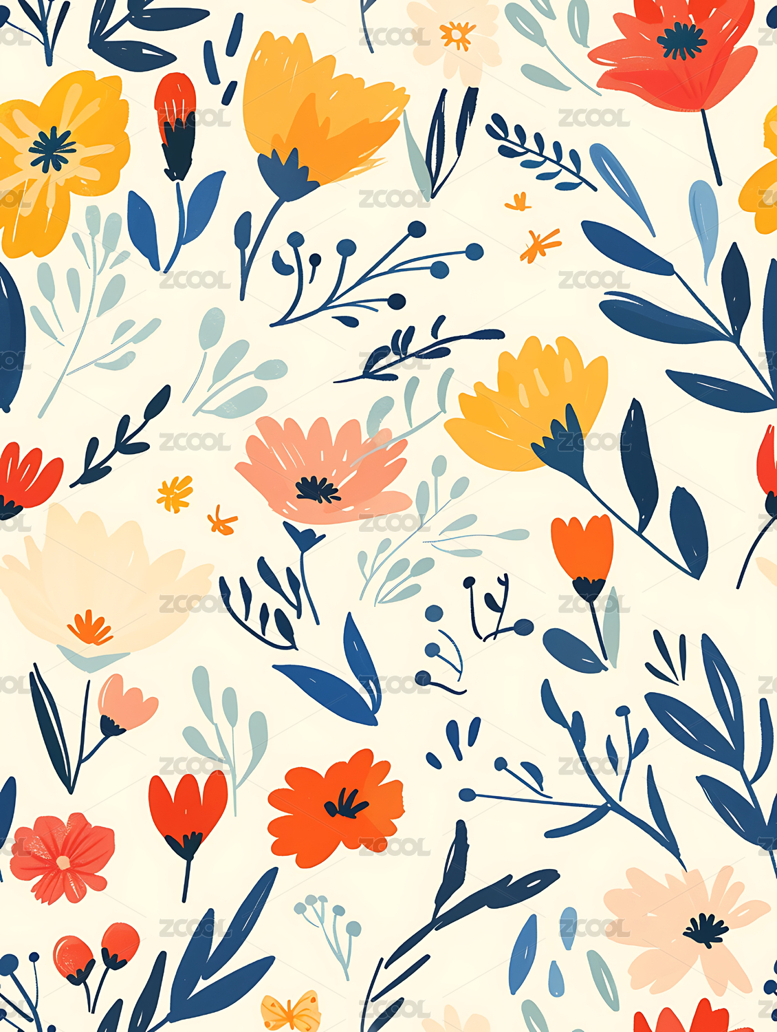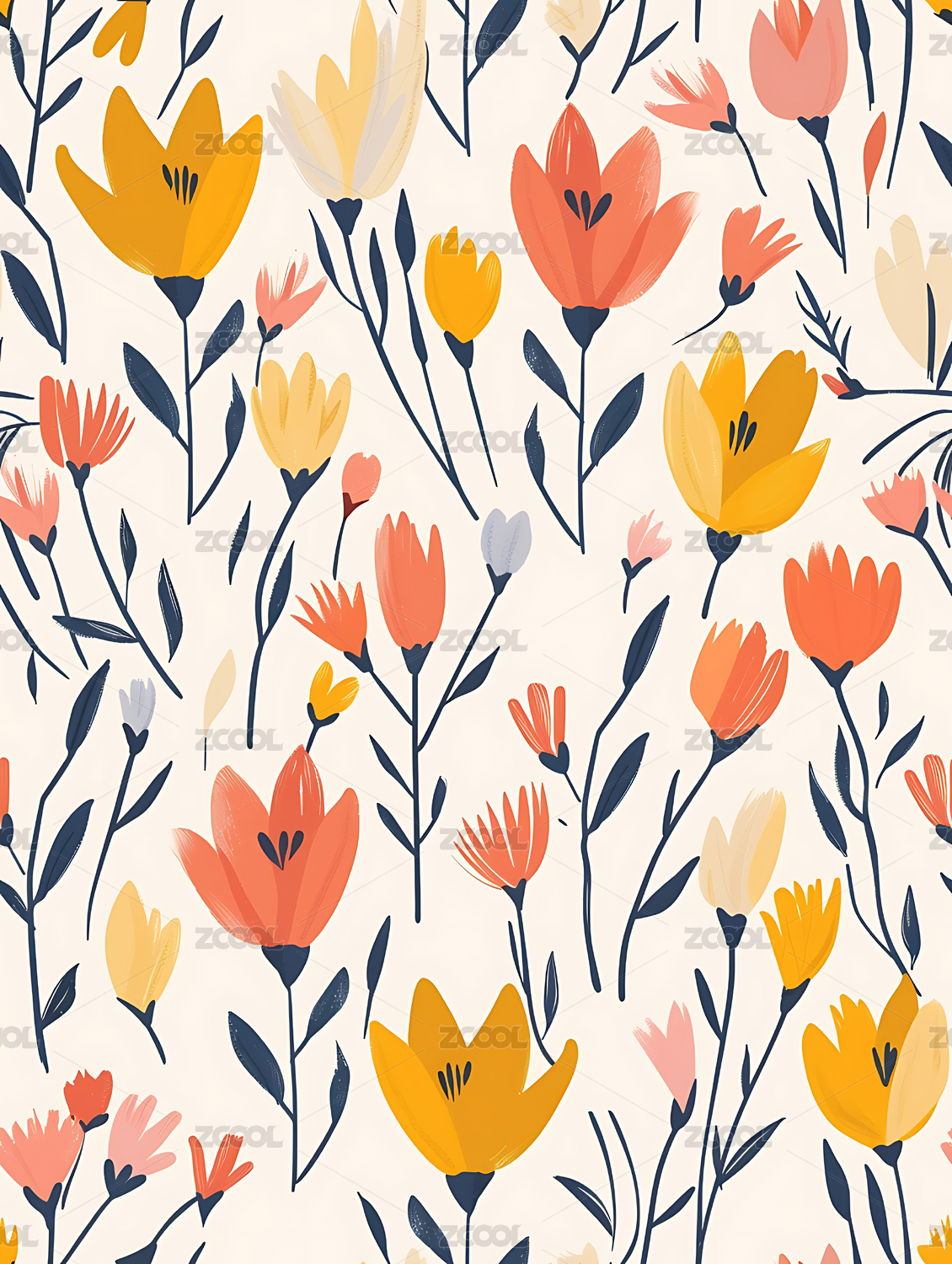 彩色线条花卉重复无缝图案纺织品装饰背景