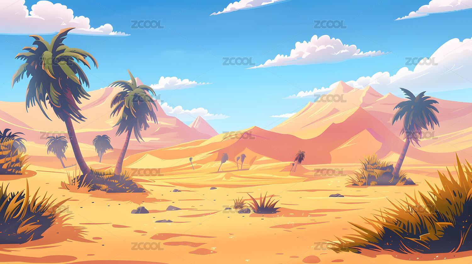 沙漠,绿洲,3d,卡通,展台,背景,自然,地形,户外,夏天
