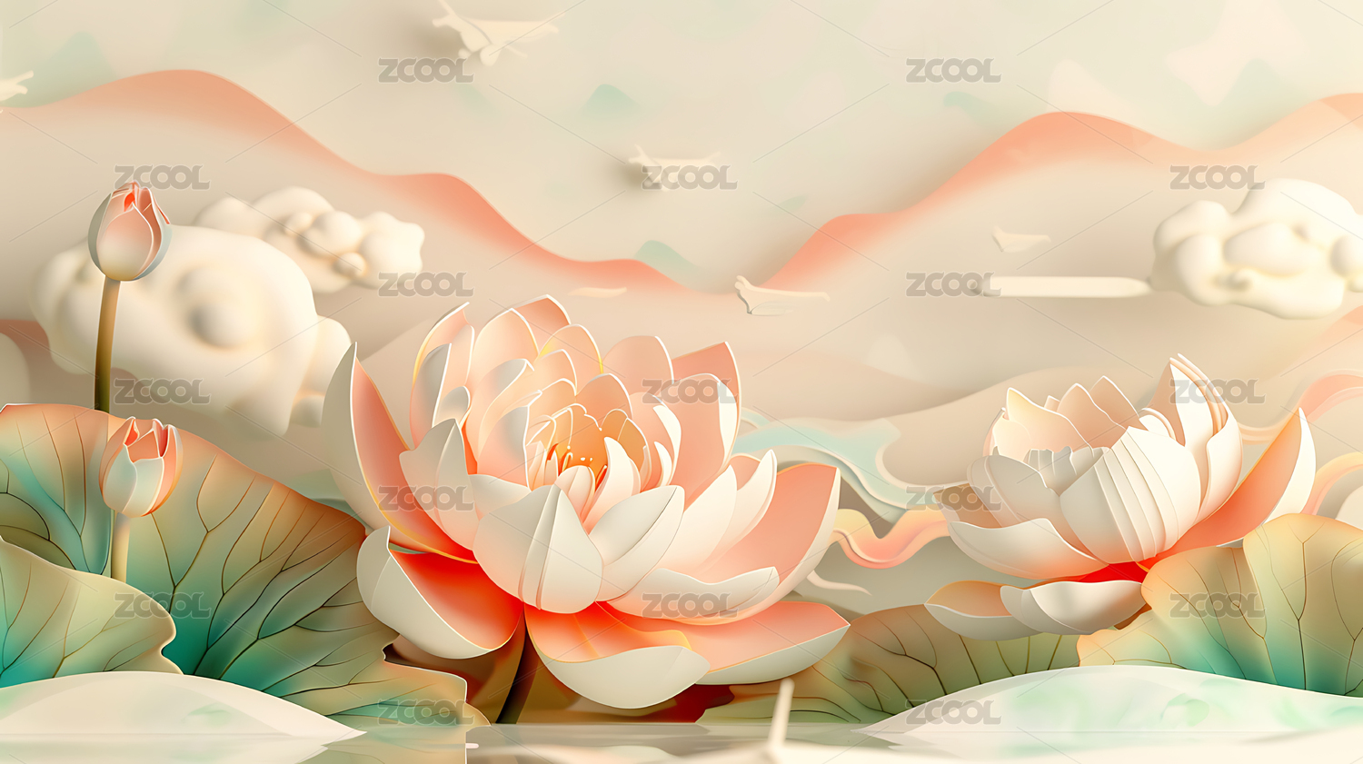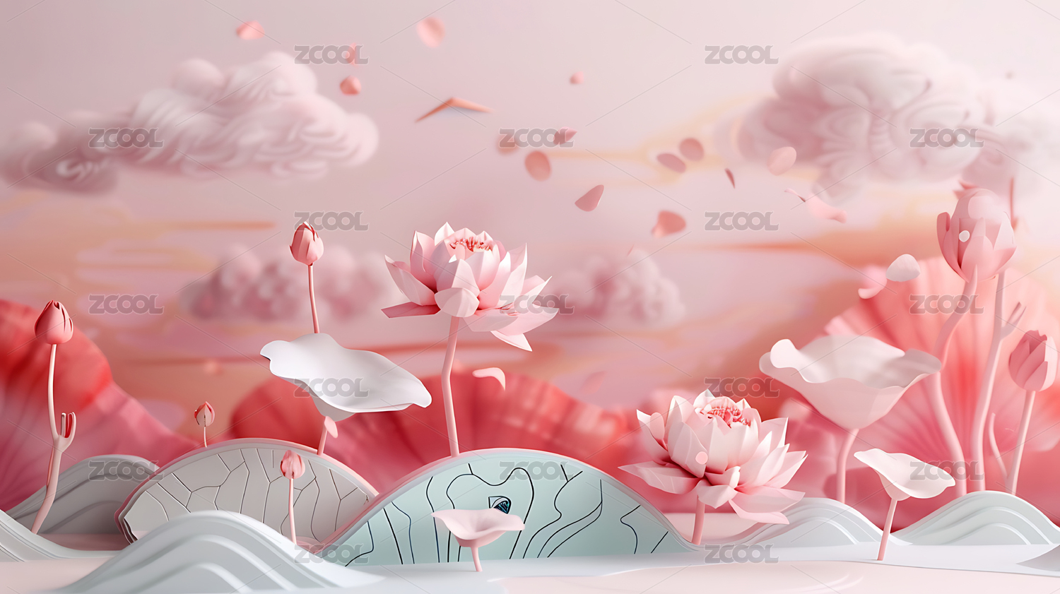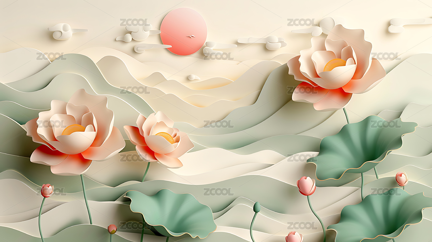 荷花,国风,剪纸,纸雕,荷叶,荷塘,植物