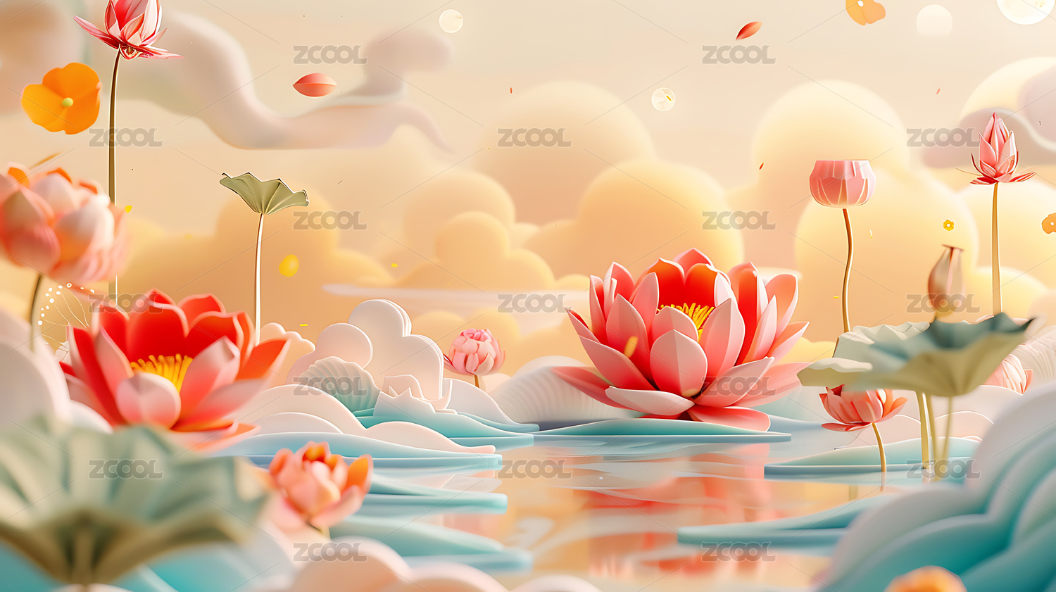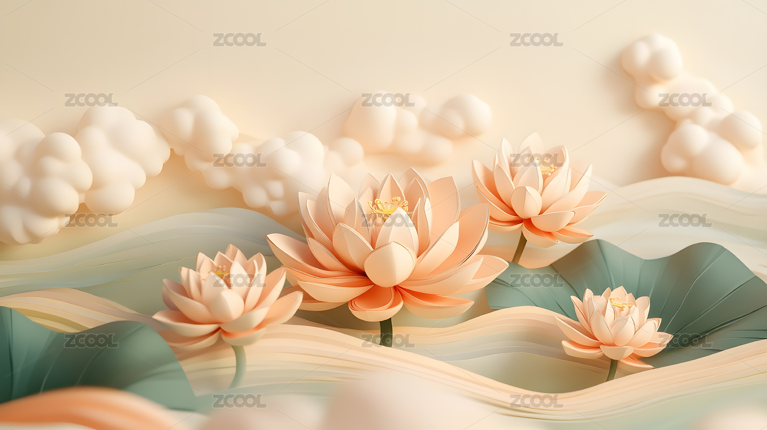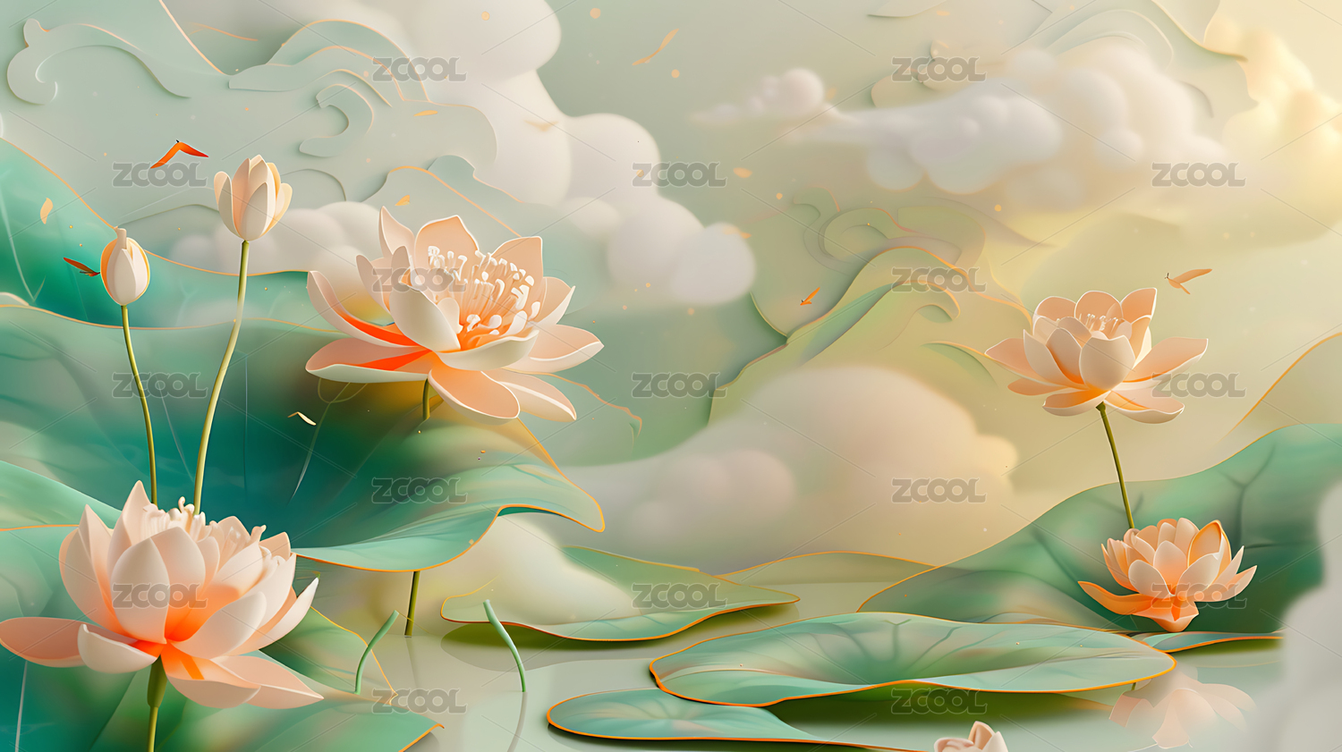 荷花,国风,剪纸,纸雕,荷叶,荷塘,植物