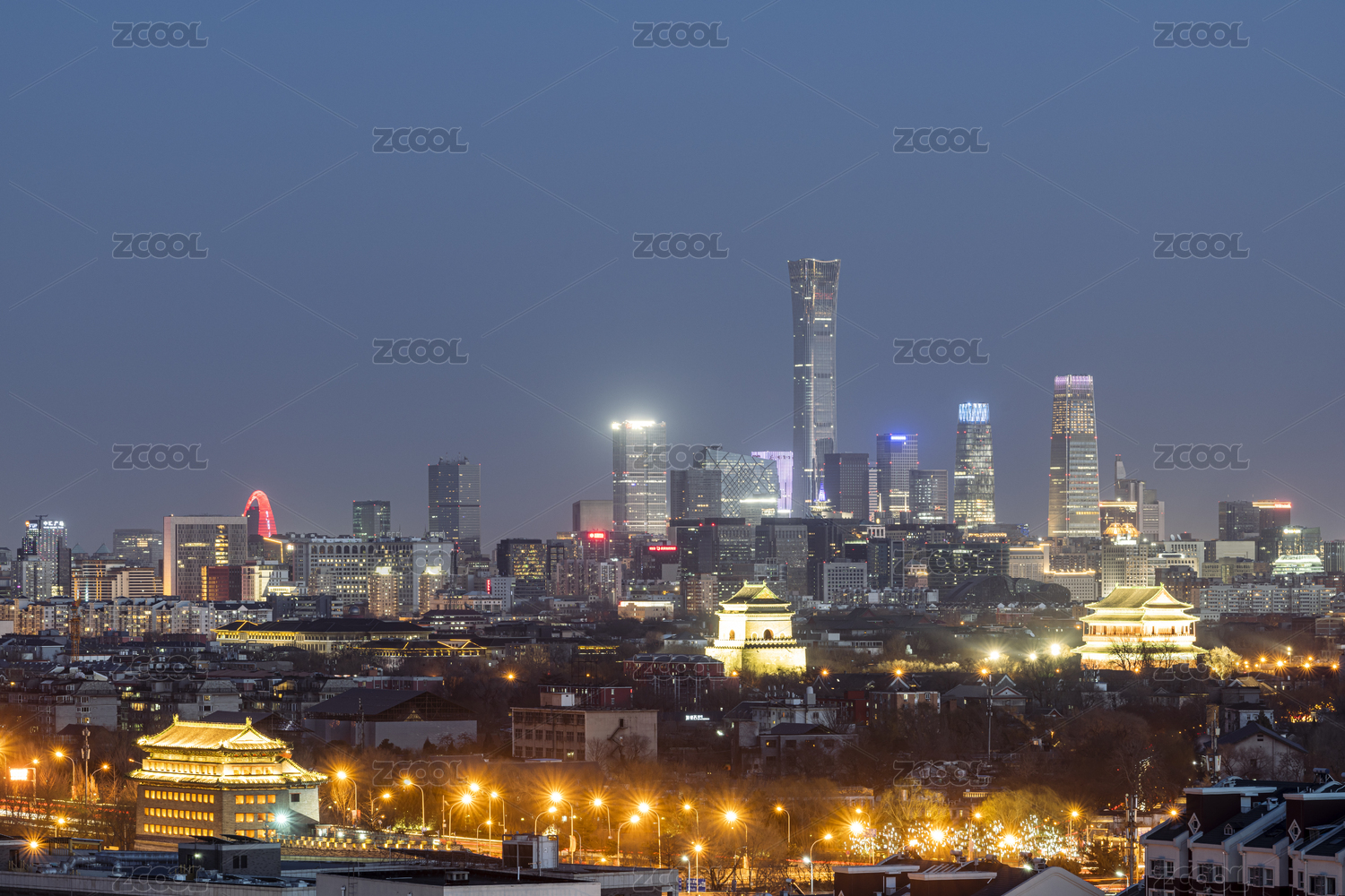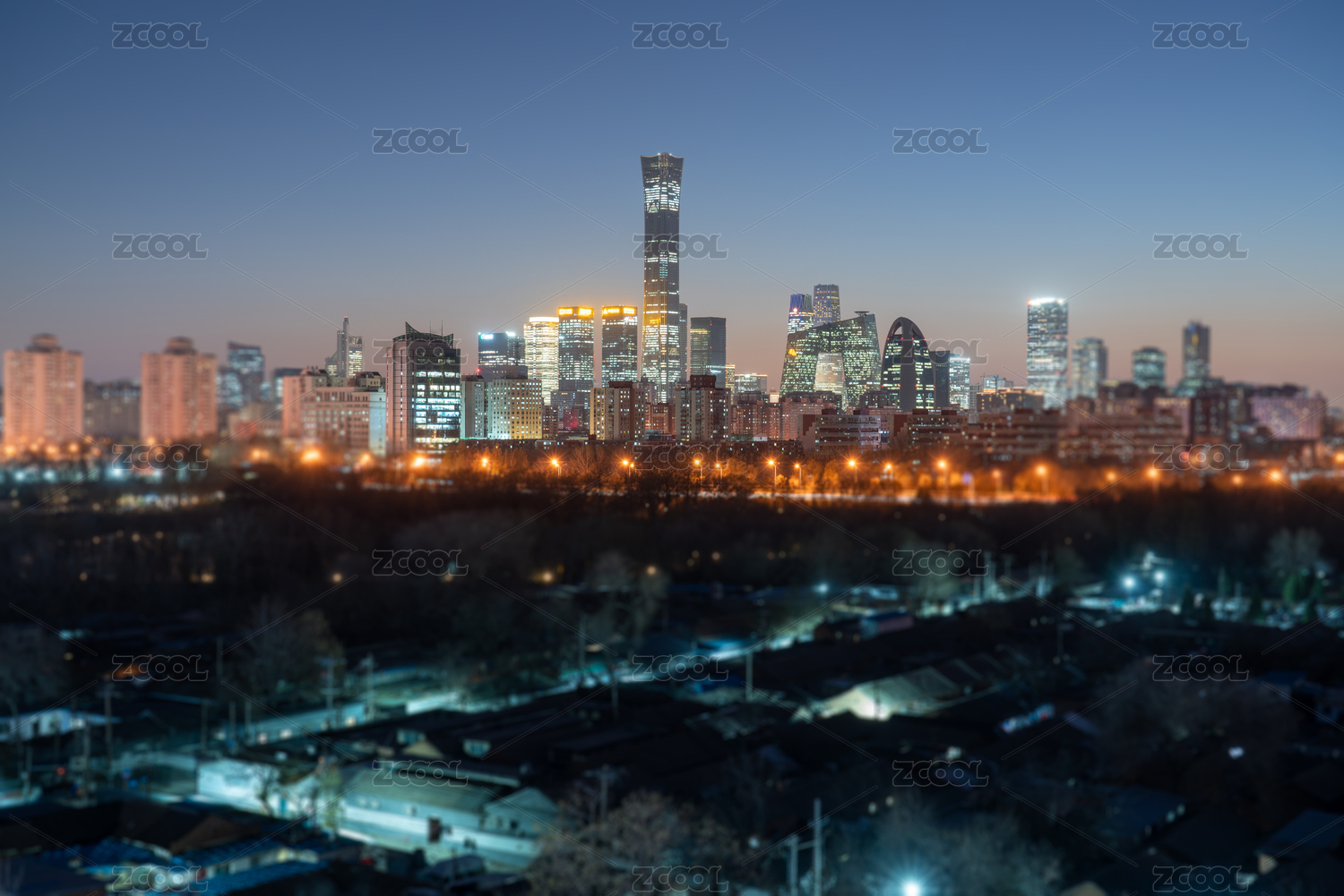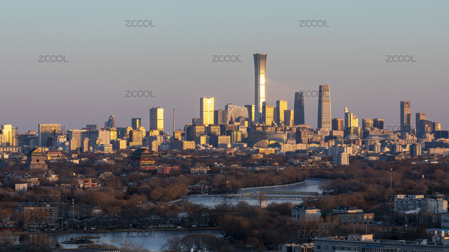 傍晚时分的北京CBD中心建筑