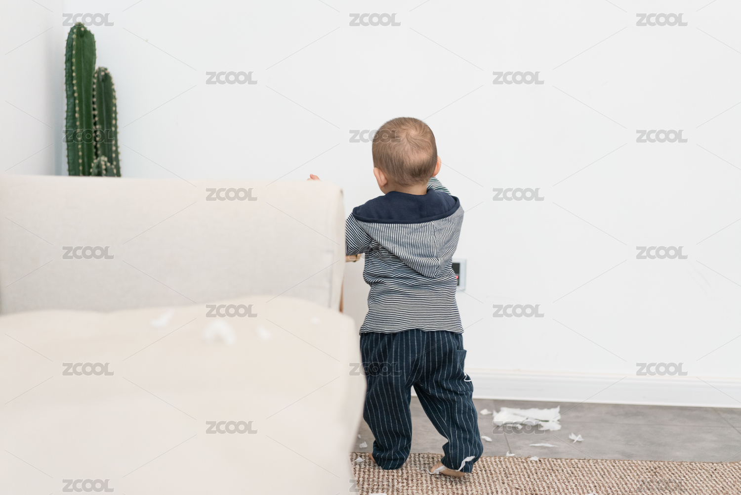 一岁半的男婴儿在地毯上玩耍益智玩具