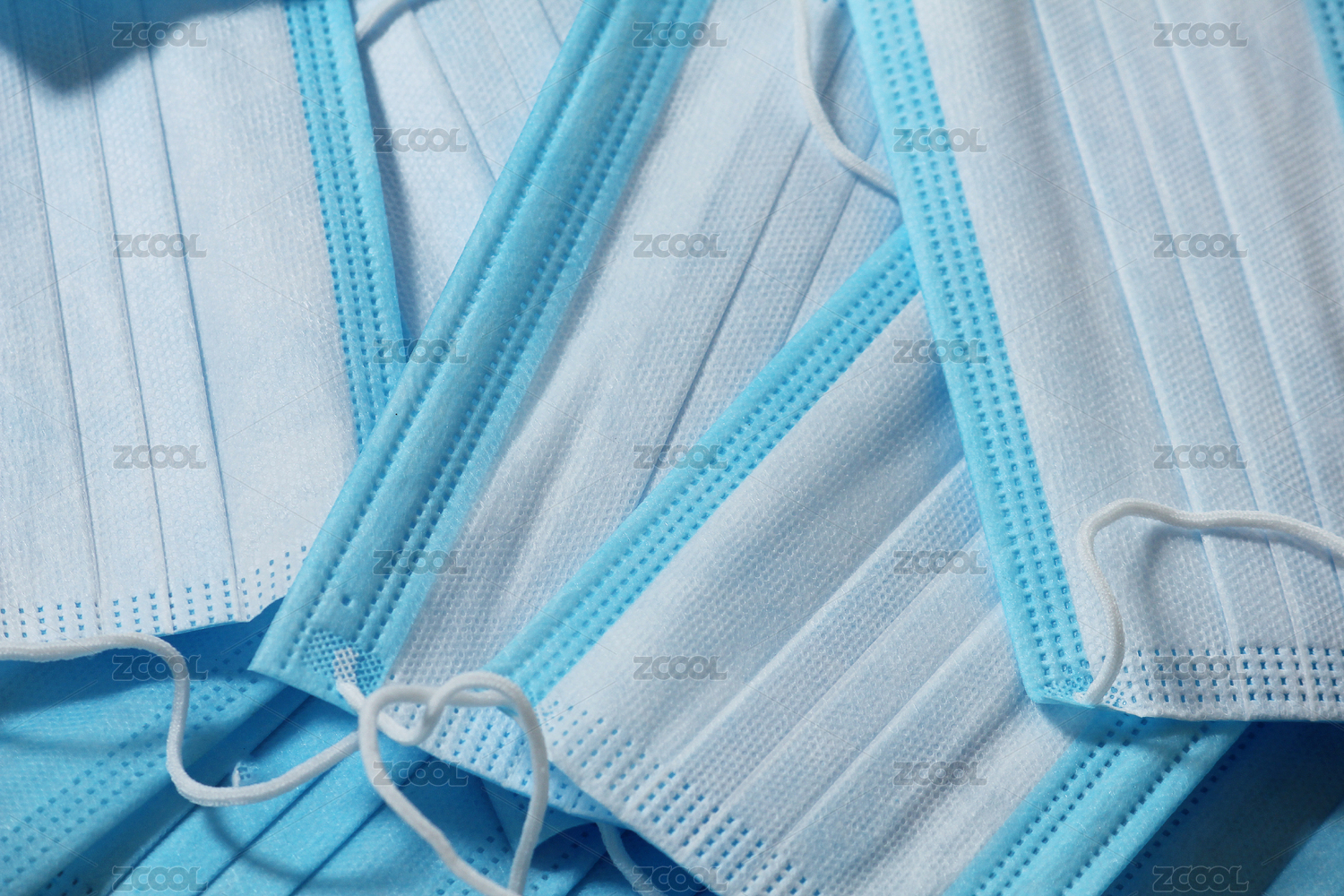 堆叠的蓝色一次性口罩特写