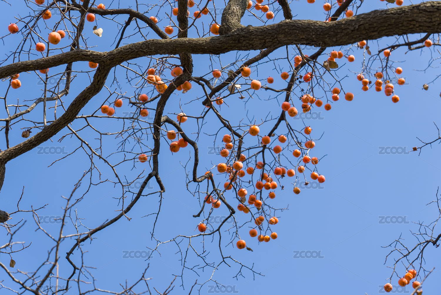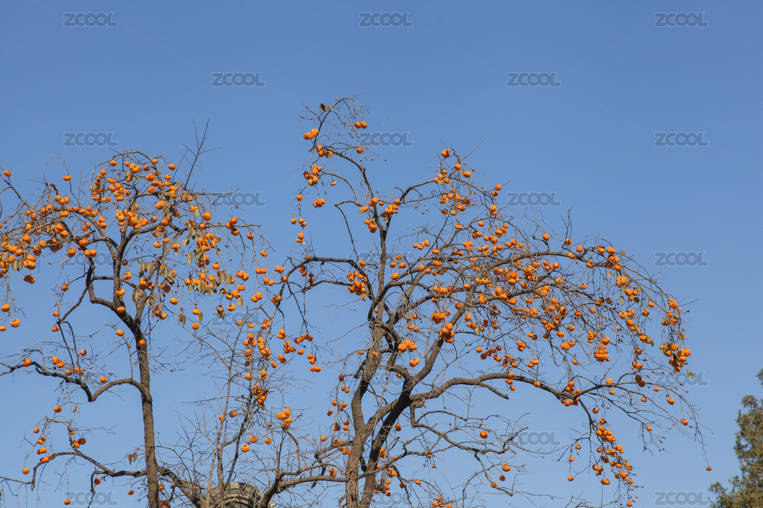 自然风景背景天空秋天柿子留白,霜降丰收果