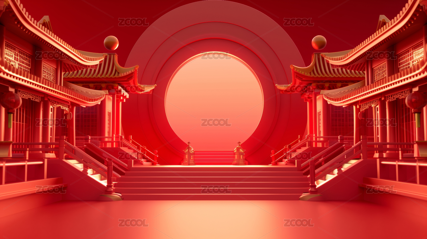 产品展台,春节,红色,建筑,电商,背景,新年,节日,展览,装饰