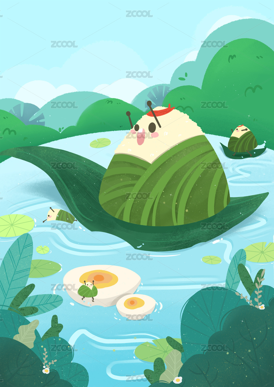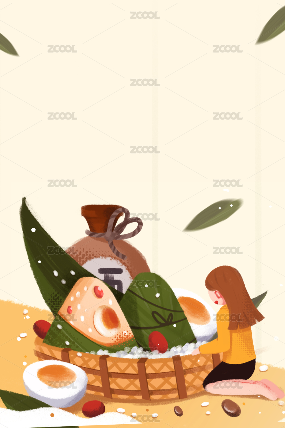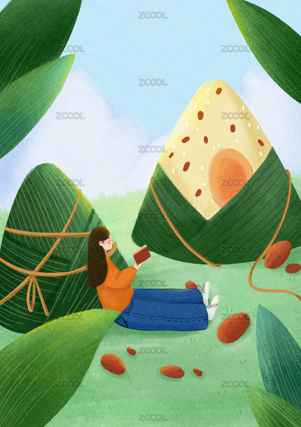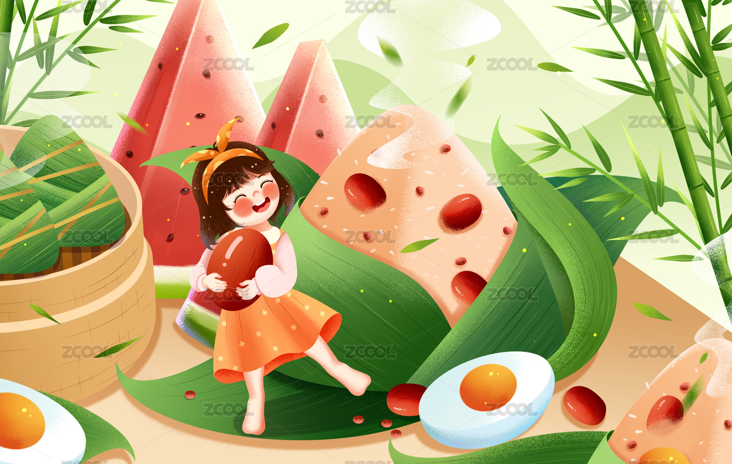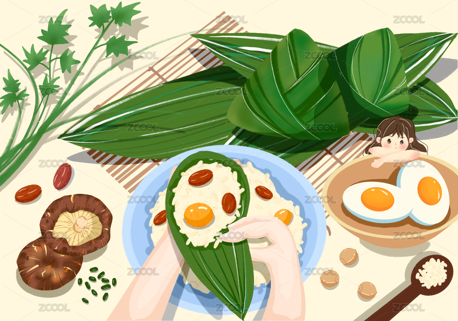 端午节,端午,包粽子,粽子,HEDF2023,粽叶,女孩,扁平插画,庆祝,节日