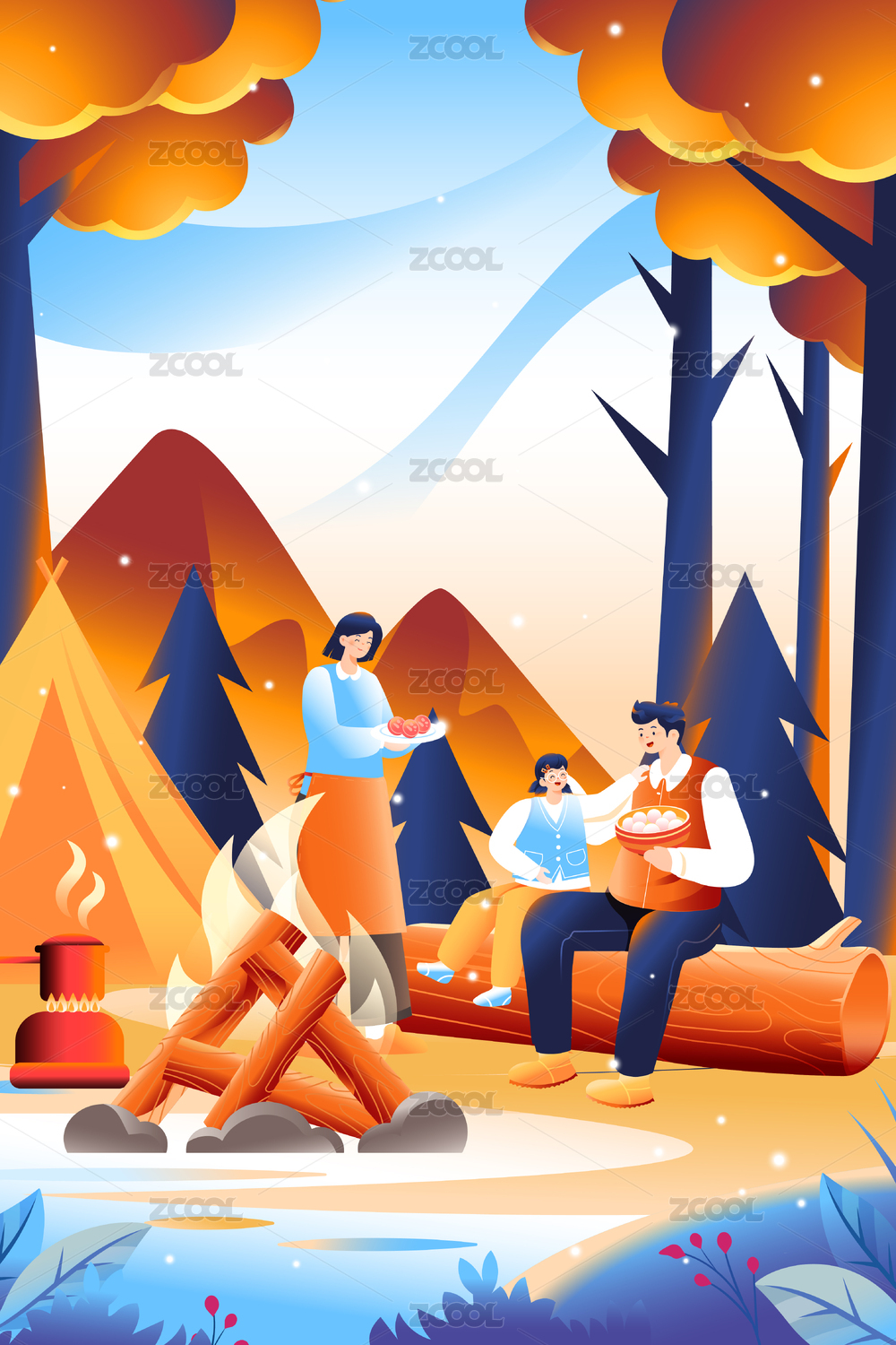 秋天户外旅行矢量插画