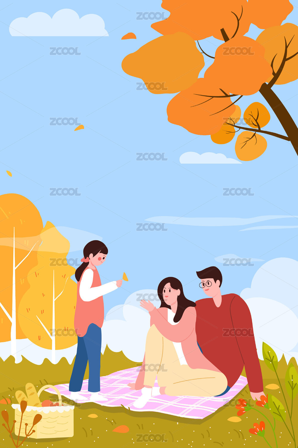 一家人秋游海报人物秋天旅游风景户外插画