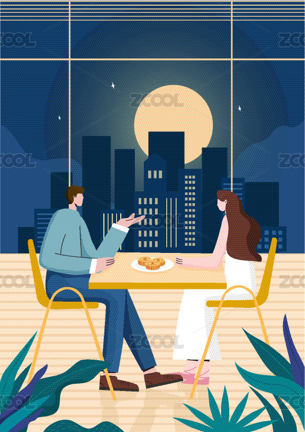 七夕情人节情侣浪漫晚餐扁平插画