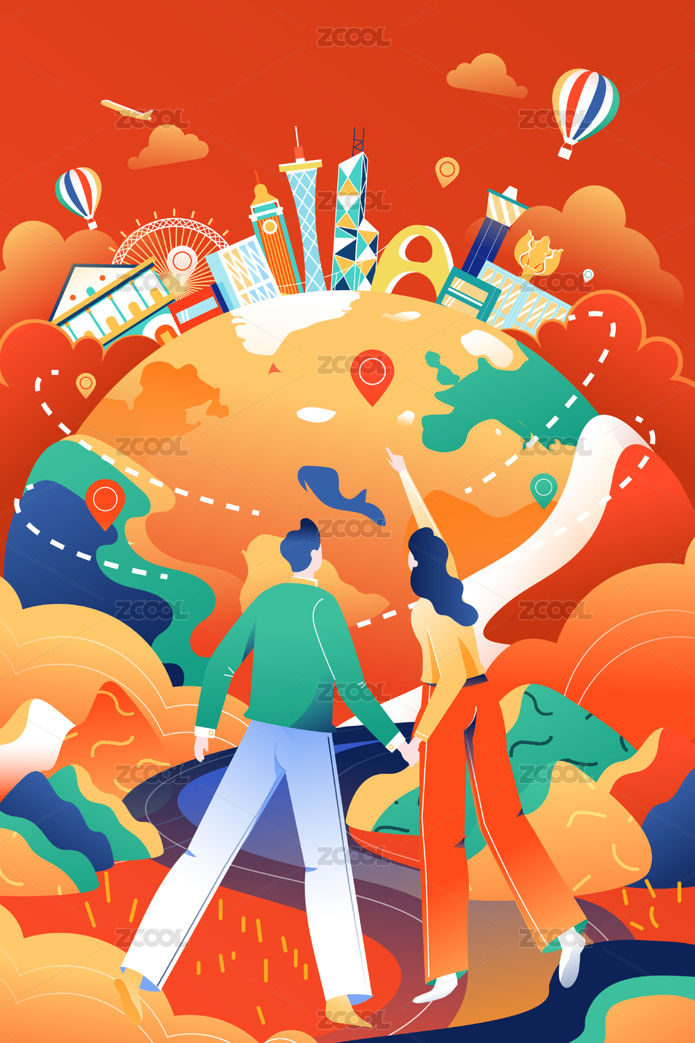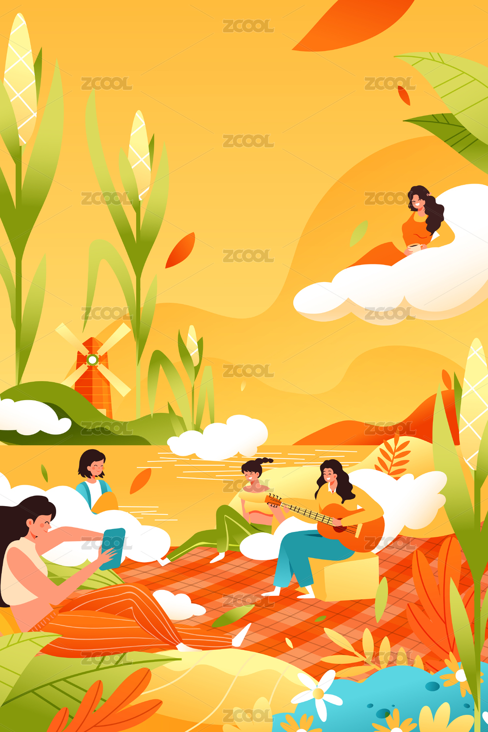 矢量,卡通,渐变,扁平,插画,插图,背景,元素,电商,风景