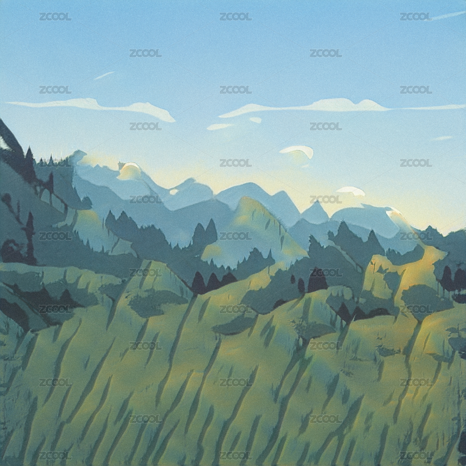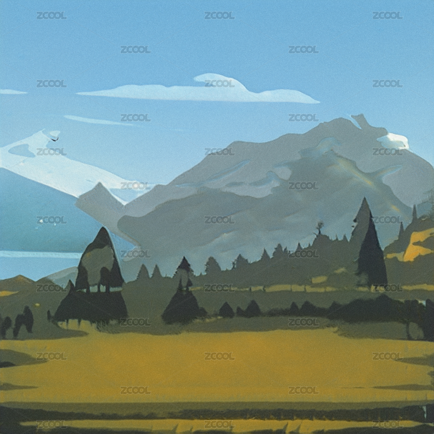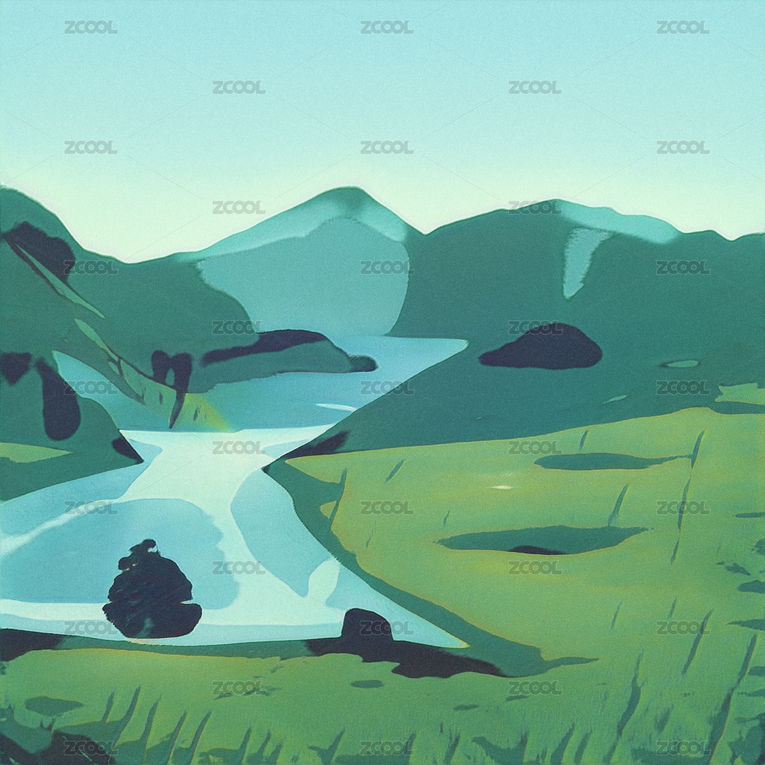 扁平自然风光插画