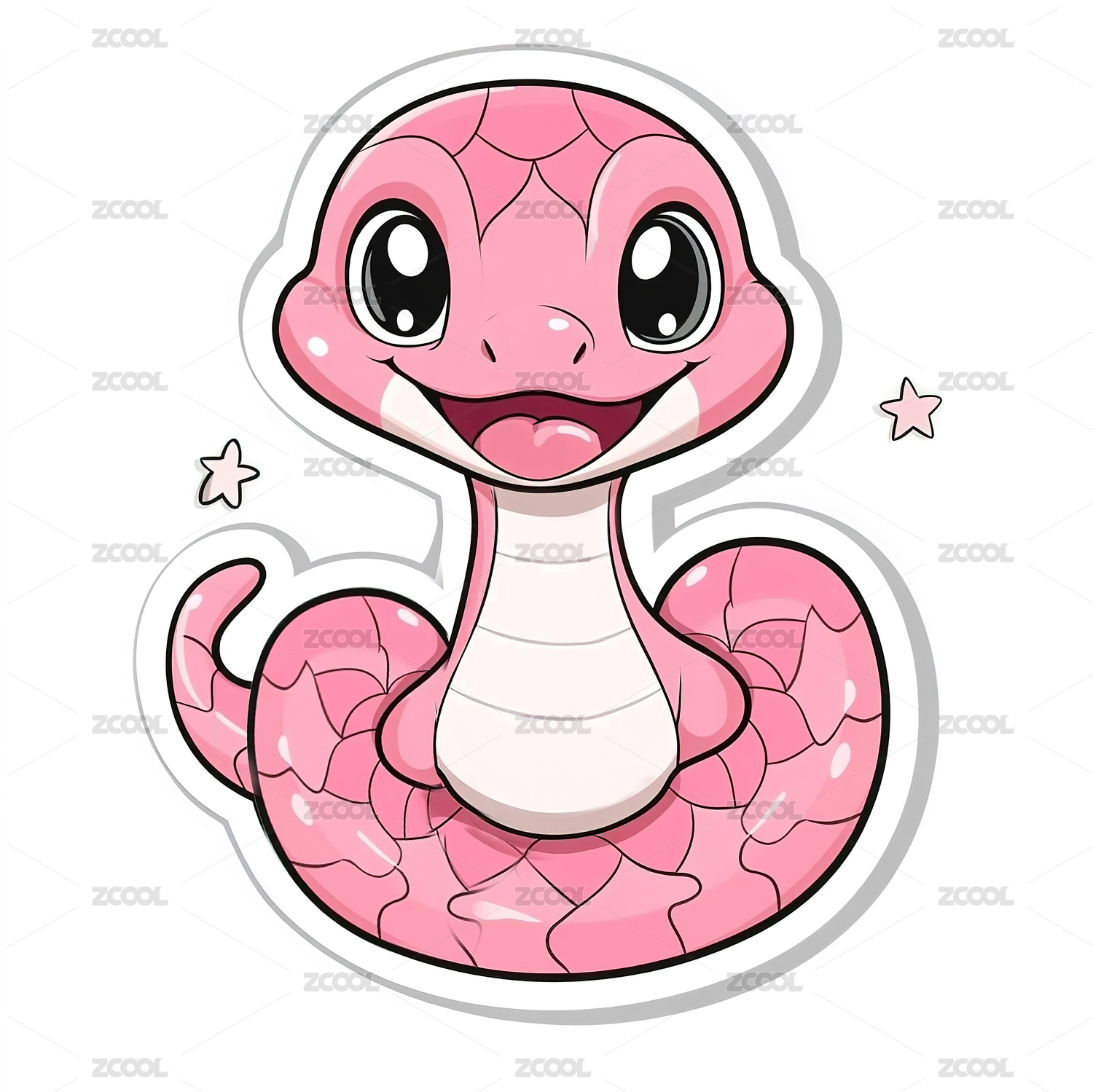 粉色蛇,卡通,贴纸,可爱,蛇,动物,插画,漫画,设计,图案