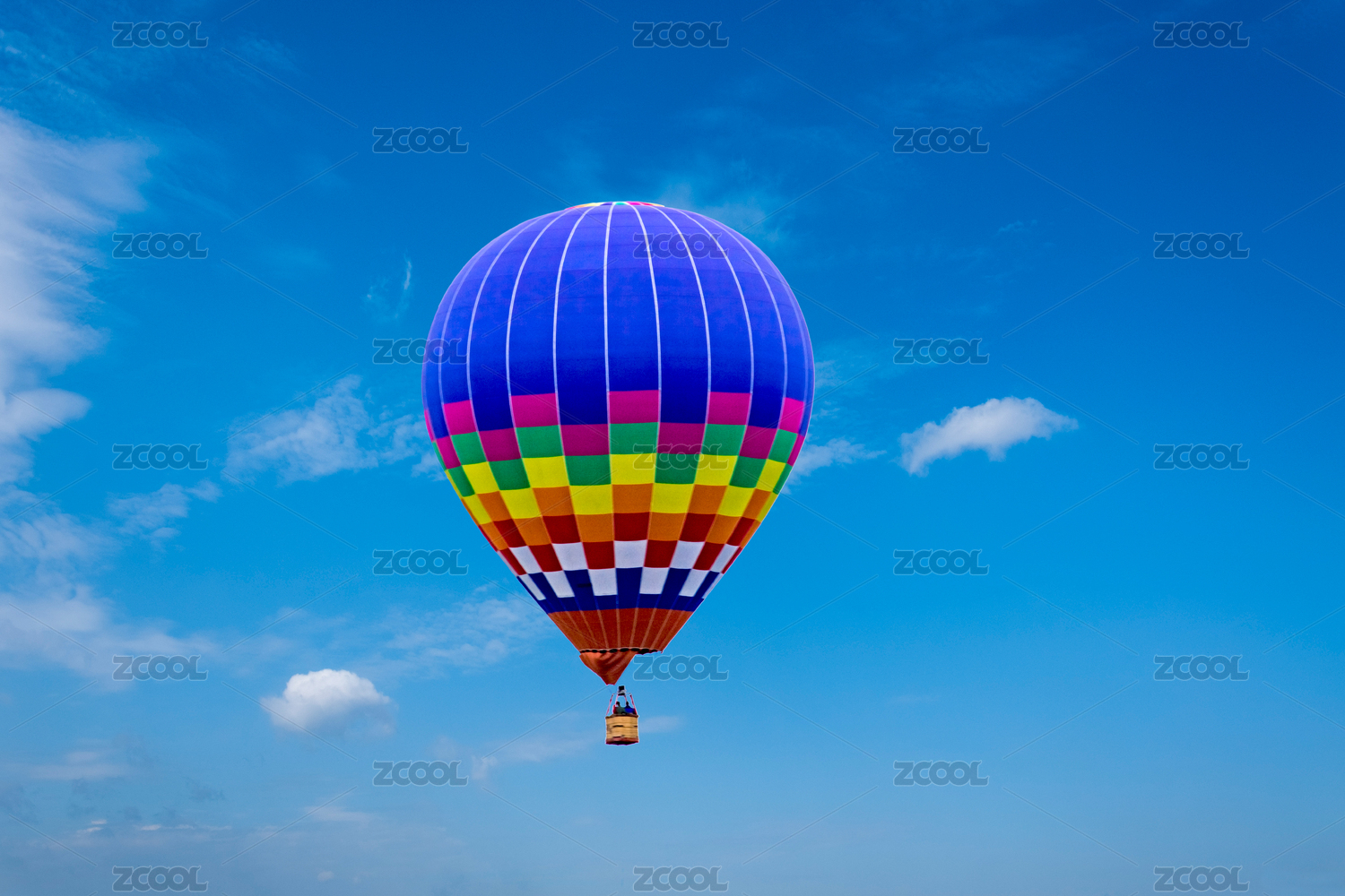 中国新疆伊犁特克斯蓝天白云彩色热气球