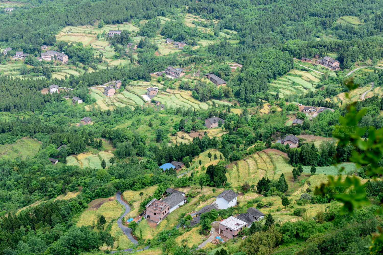 重庆市南川区金佛山脚下村庄的椭圆形梯田