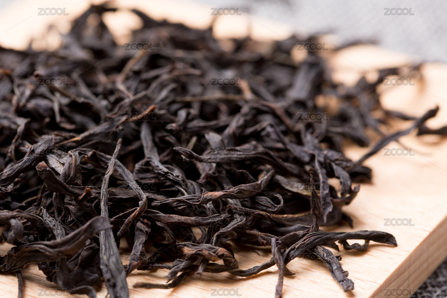 木纹桌面上的红茶茶叶