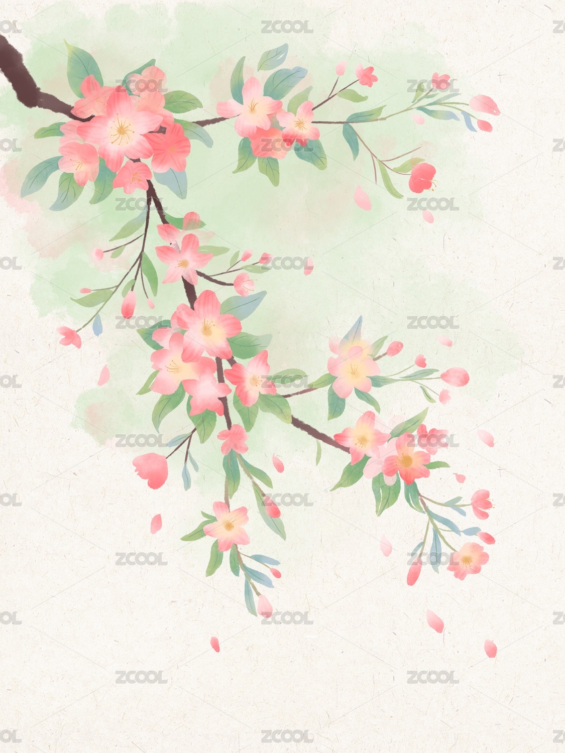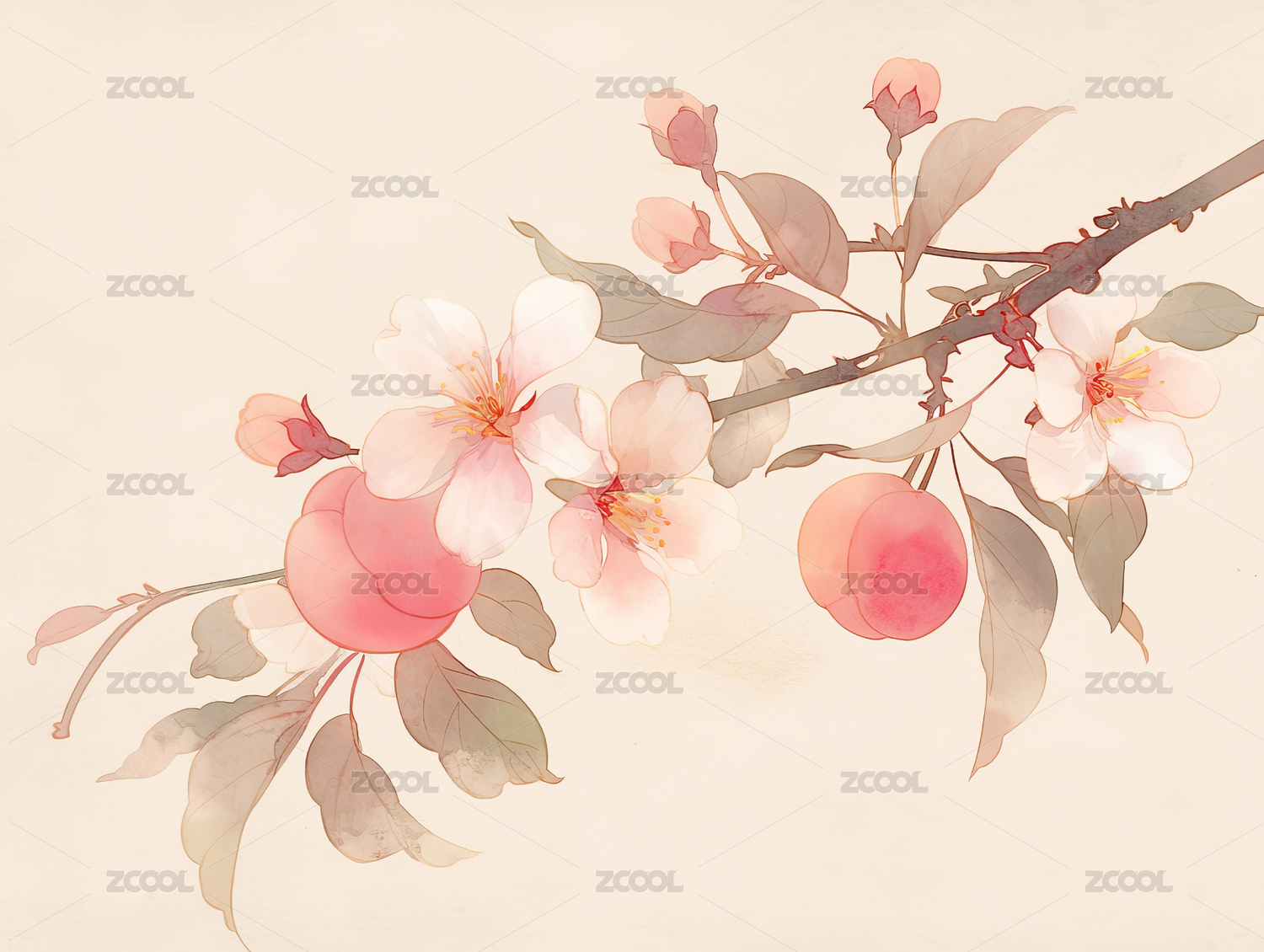 水彩花卉桃花