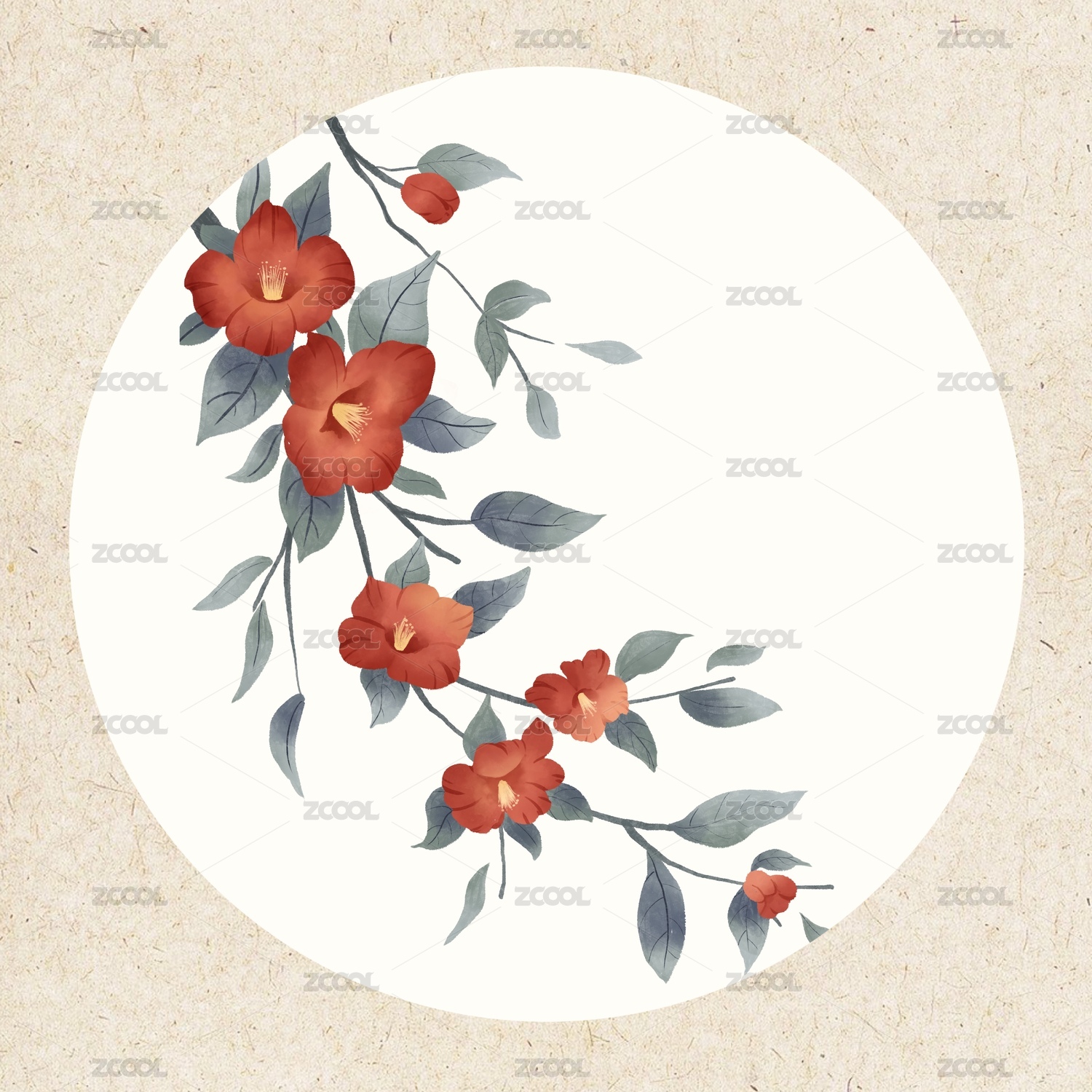 古风水彩植物花卉山茶花