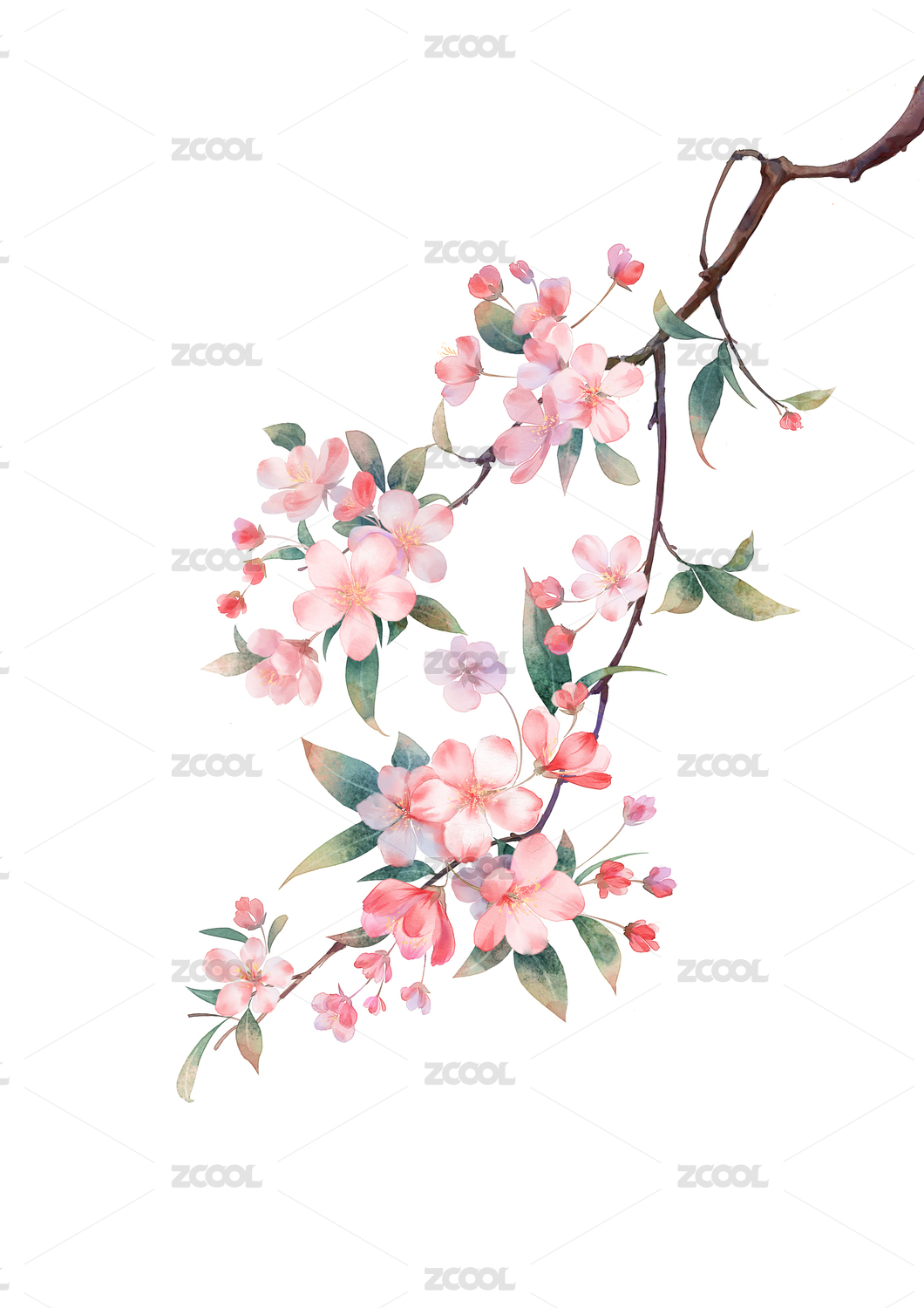 水彩粉红色杏花枝
