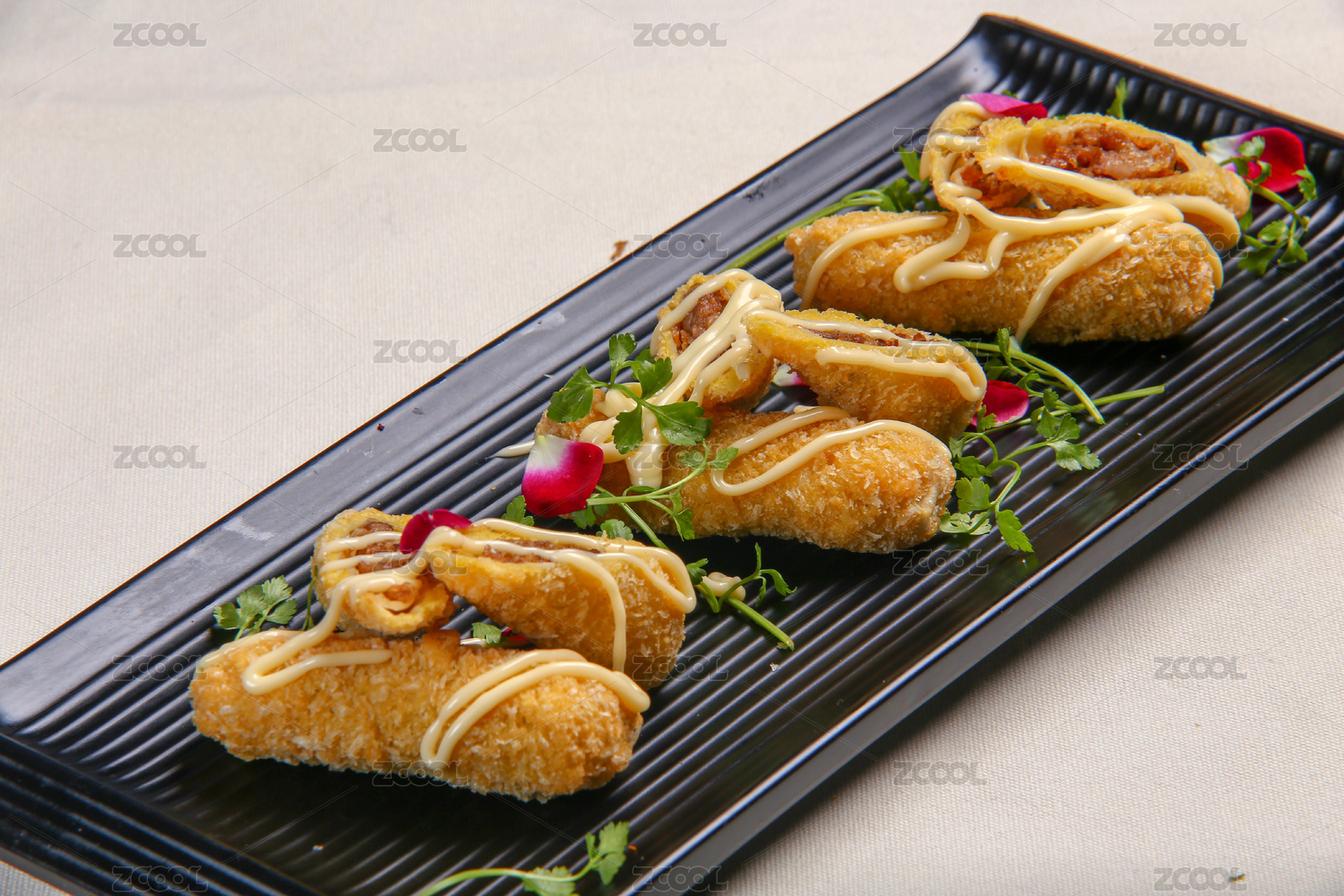 炸鸡油炸黄金蛋皮卷蟹肉虾滑脆皮肉卷