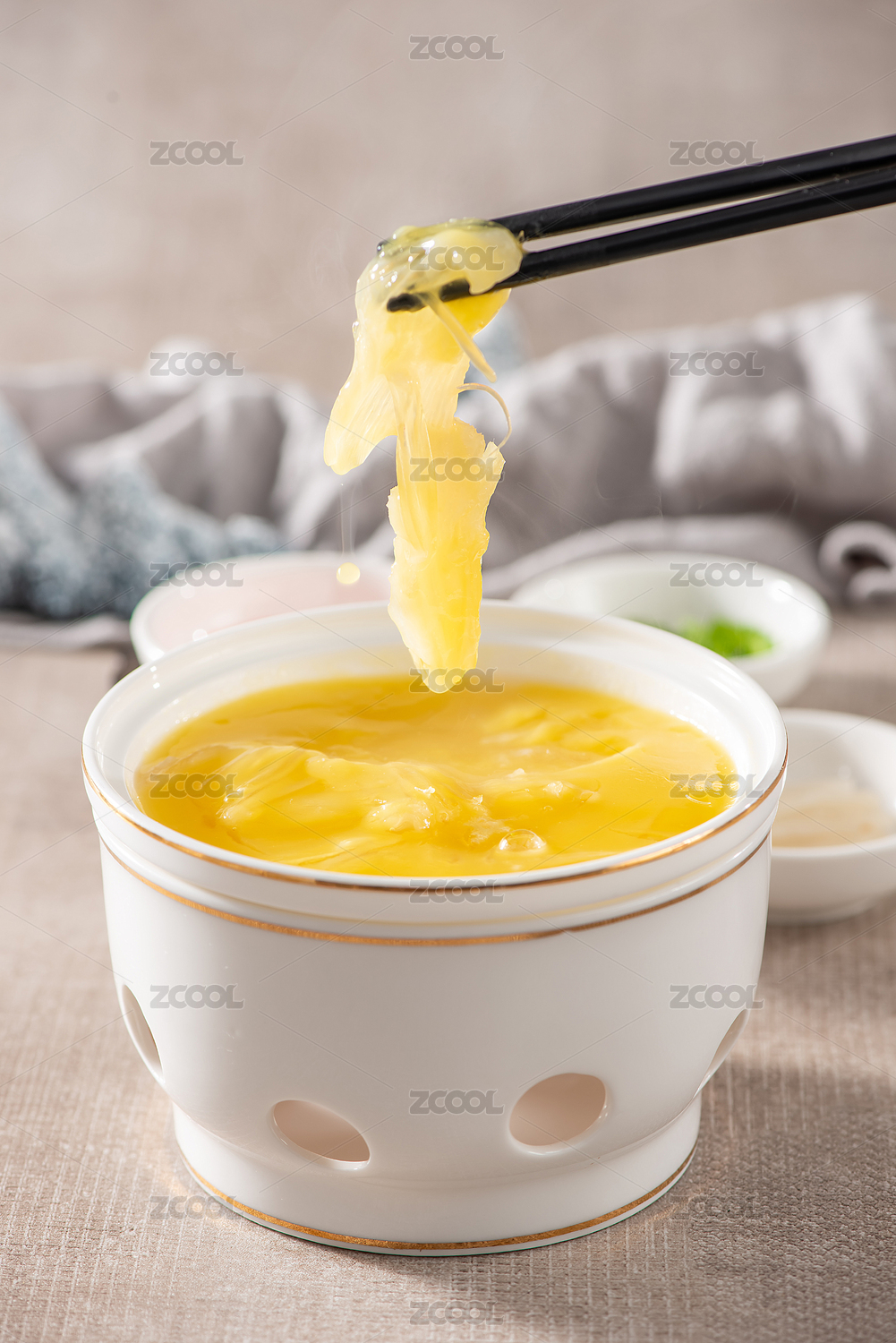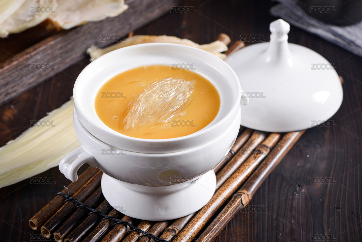 白色自热炉上的一碗黄澄澄的鱼翅养生羹