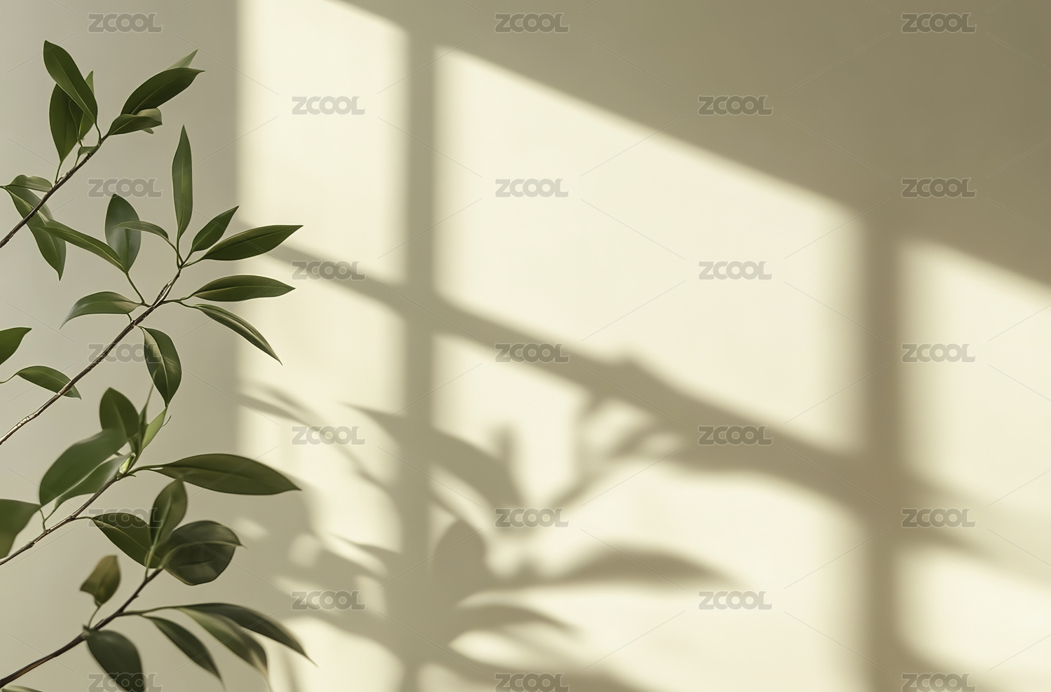 绿叶枝条光影投射白色墙面
