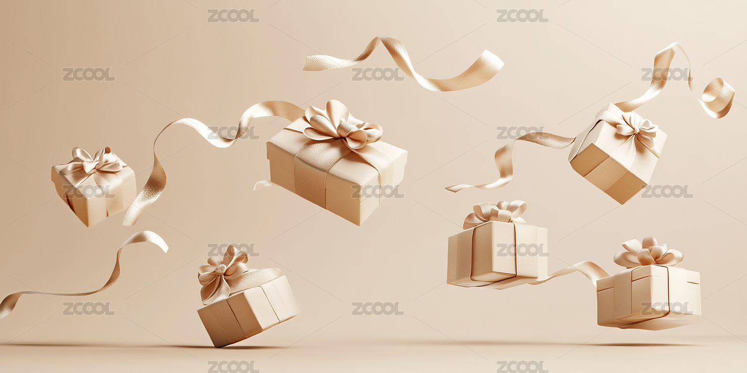 礼盒和飘动的金色丝带