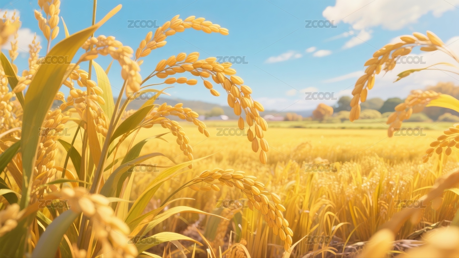 金色稻田丰收景象