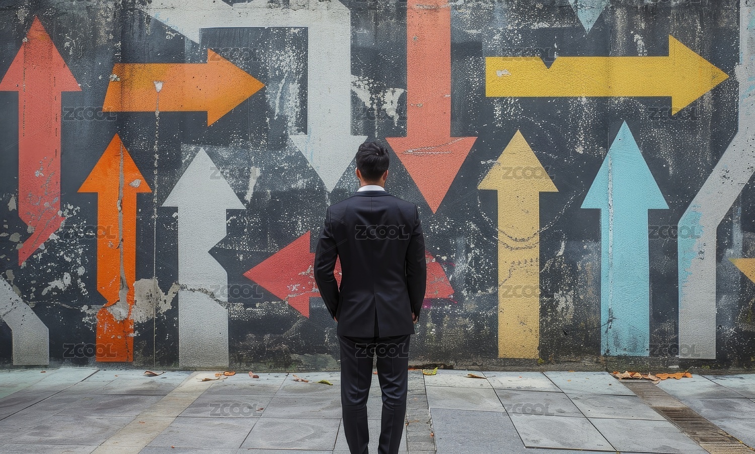 商务人士职场感觉思绪思路很乱问号不知所措抉择选择判断概念