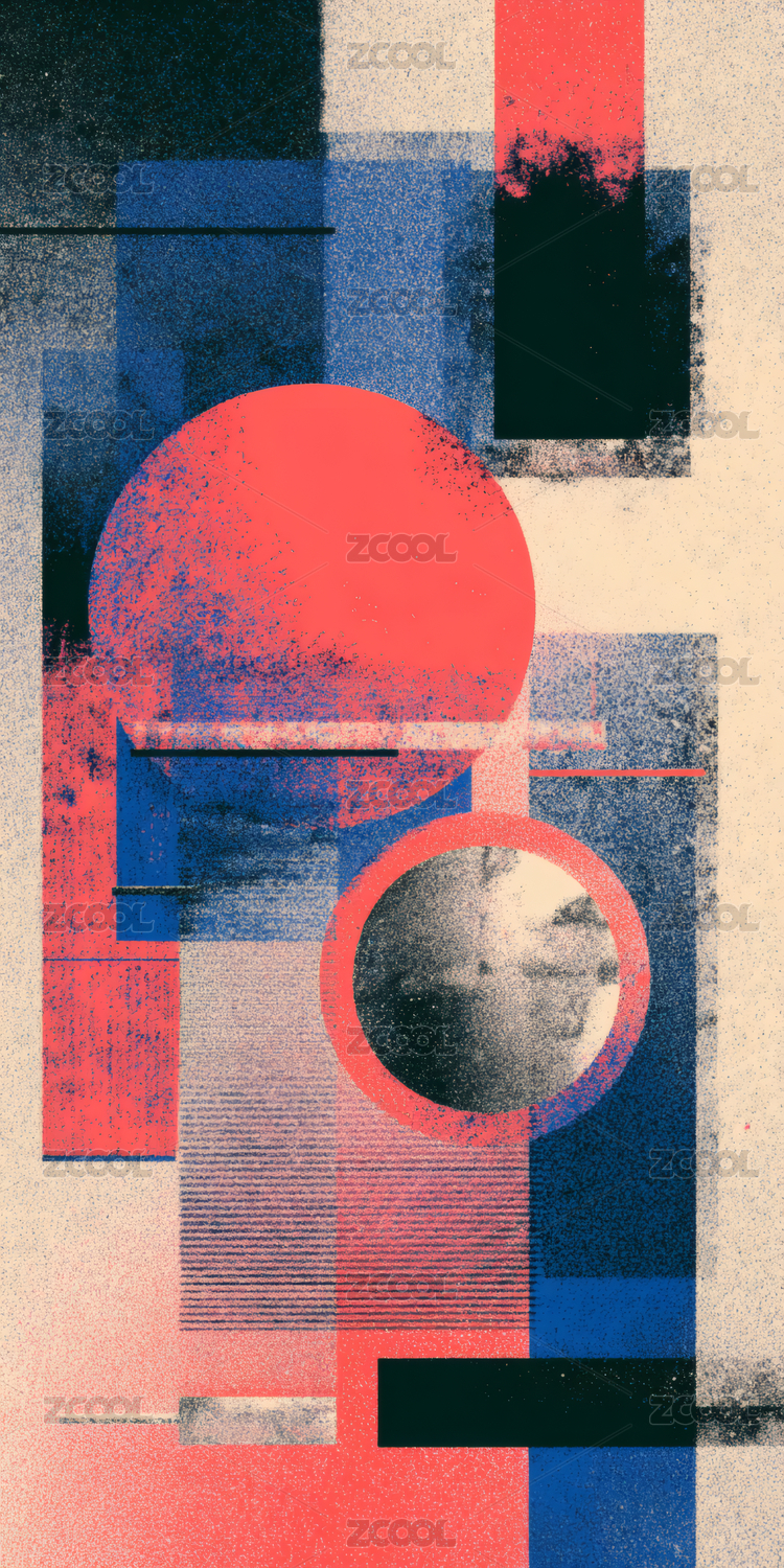 暖橙和深棕色块之间穿插线条的暖色调装饰画