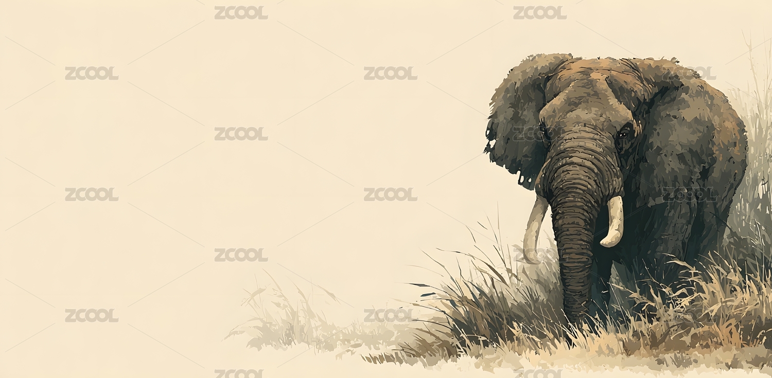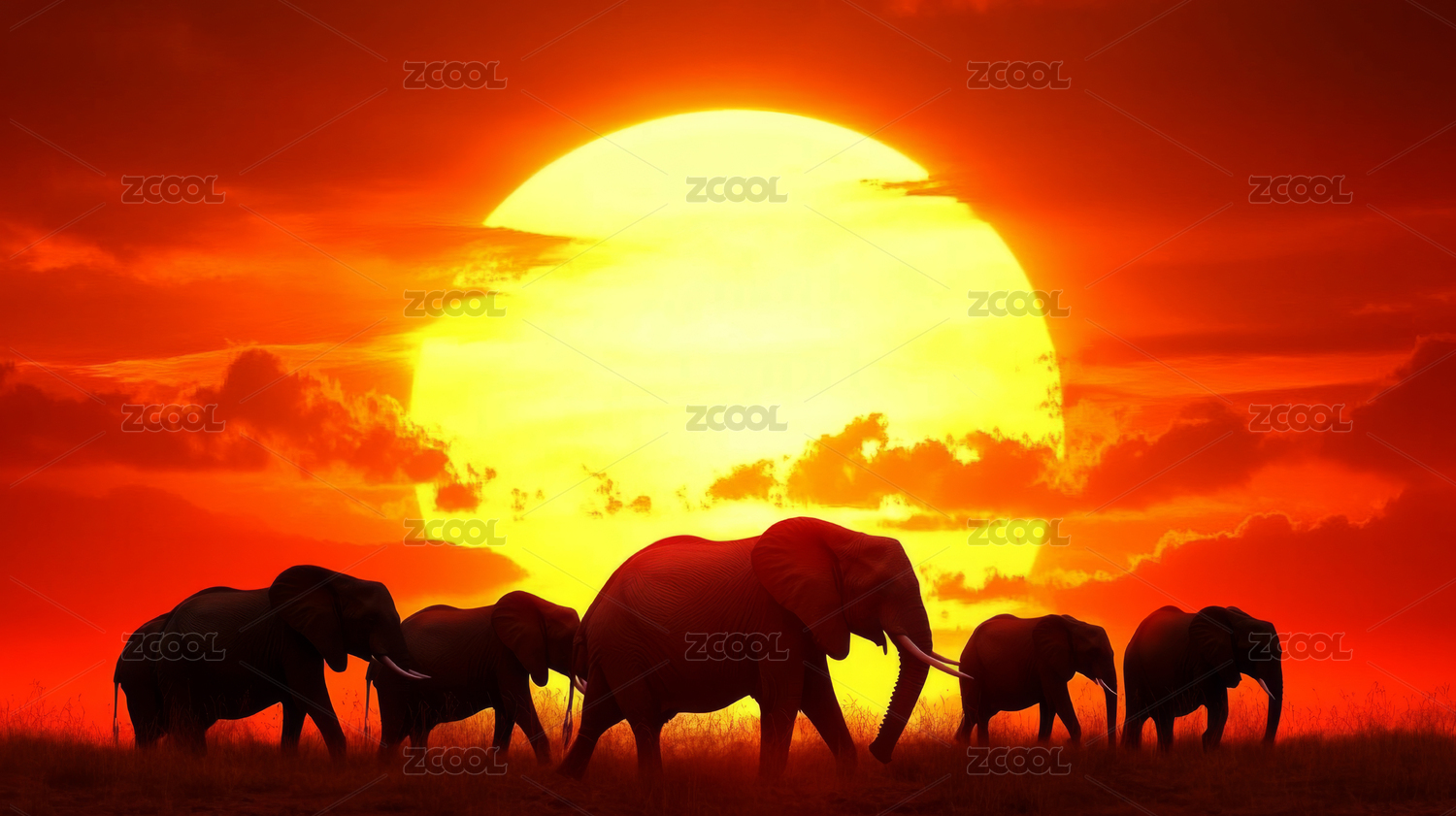 非洲,大象,草原,动物,野生动物,自然,风景,绘画,油画,艺术