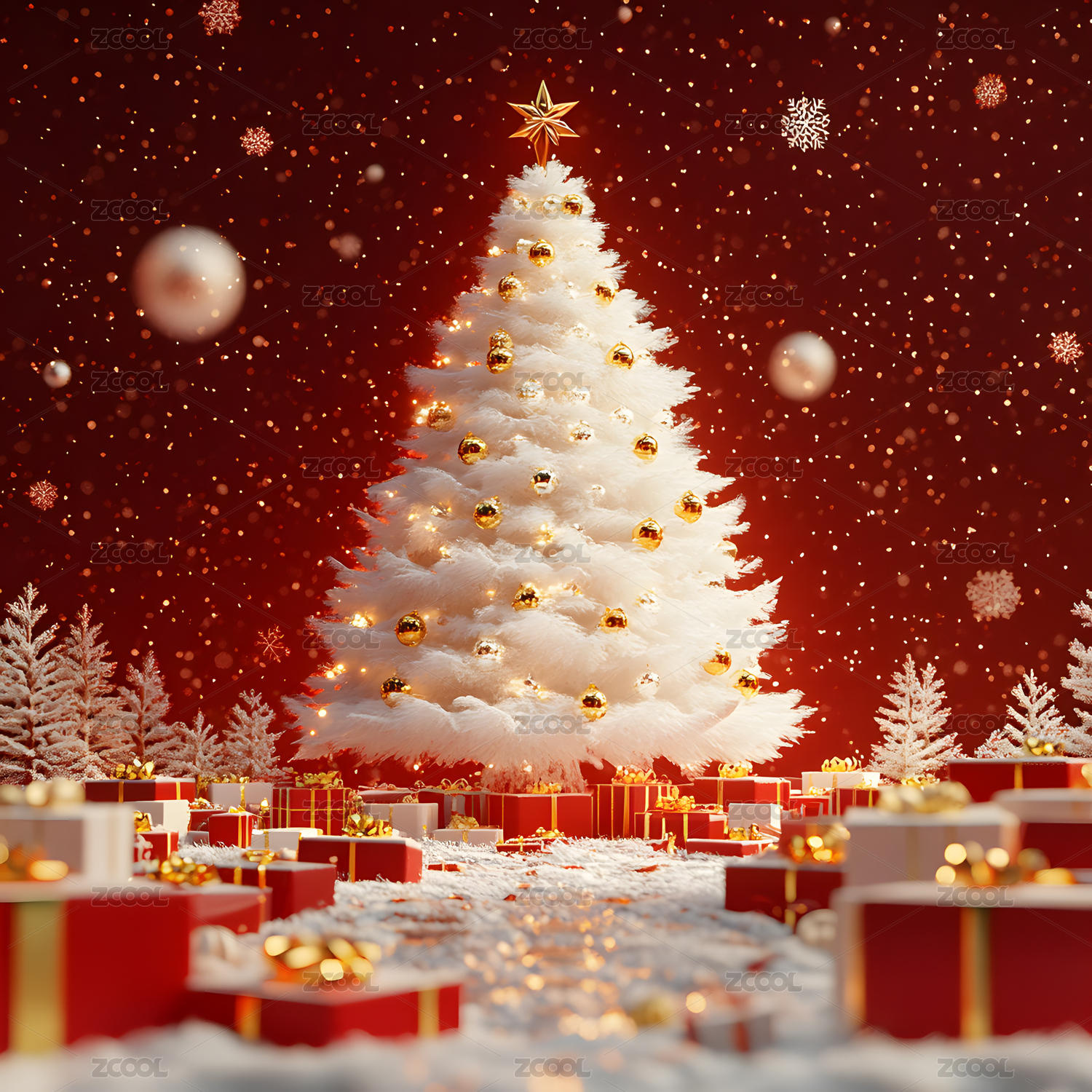 圣诞树,圣诞节,礼物,红色,金色,灯光,装饰,节日,庆典,喜庆