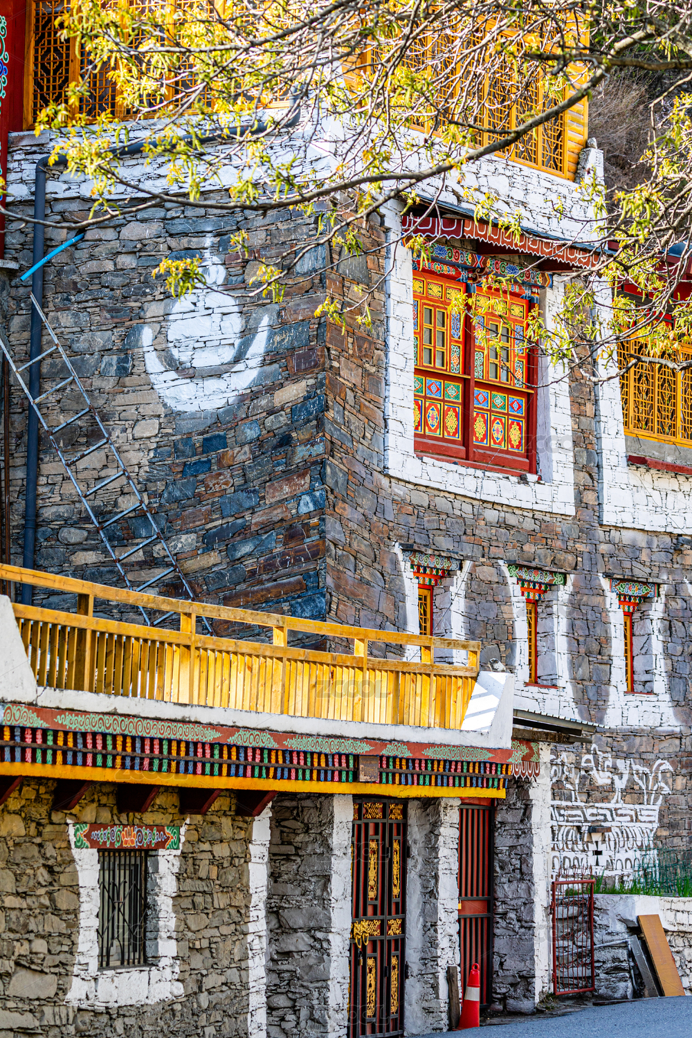 四川羊茸哈德藏寨藏族建筑石墙和窗户